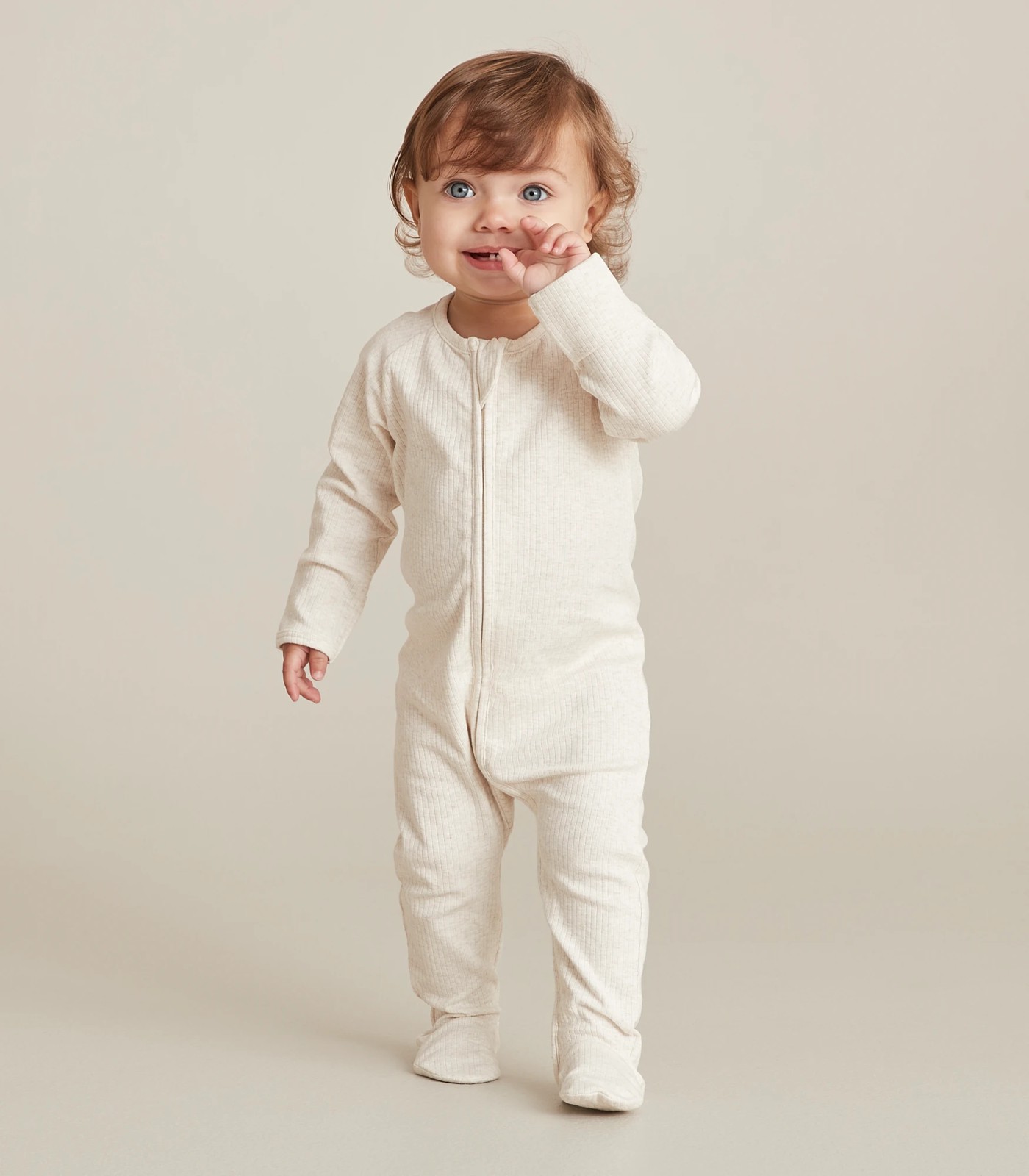This fabric is not only soft to touch, but also gentle on your baby's delicate skin. The coverall is designed for maximum comfort, ensuring your little one can move freely throughout the day. With its regular fit, round neck, and long raglan sleeves, this coverall provides a stylish and snug fit. The fold over mitts keep your baby's hands warm, while the two-way zip front makes changing a breeze. Complete with covered feet, this coverall is perfect for keeping your baby cosy. Choose the Baby Organic Cotton Rib Coverall for a natural, comfortable, and adorable outfit for your little bundle of joy.