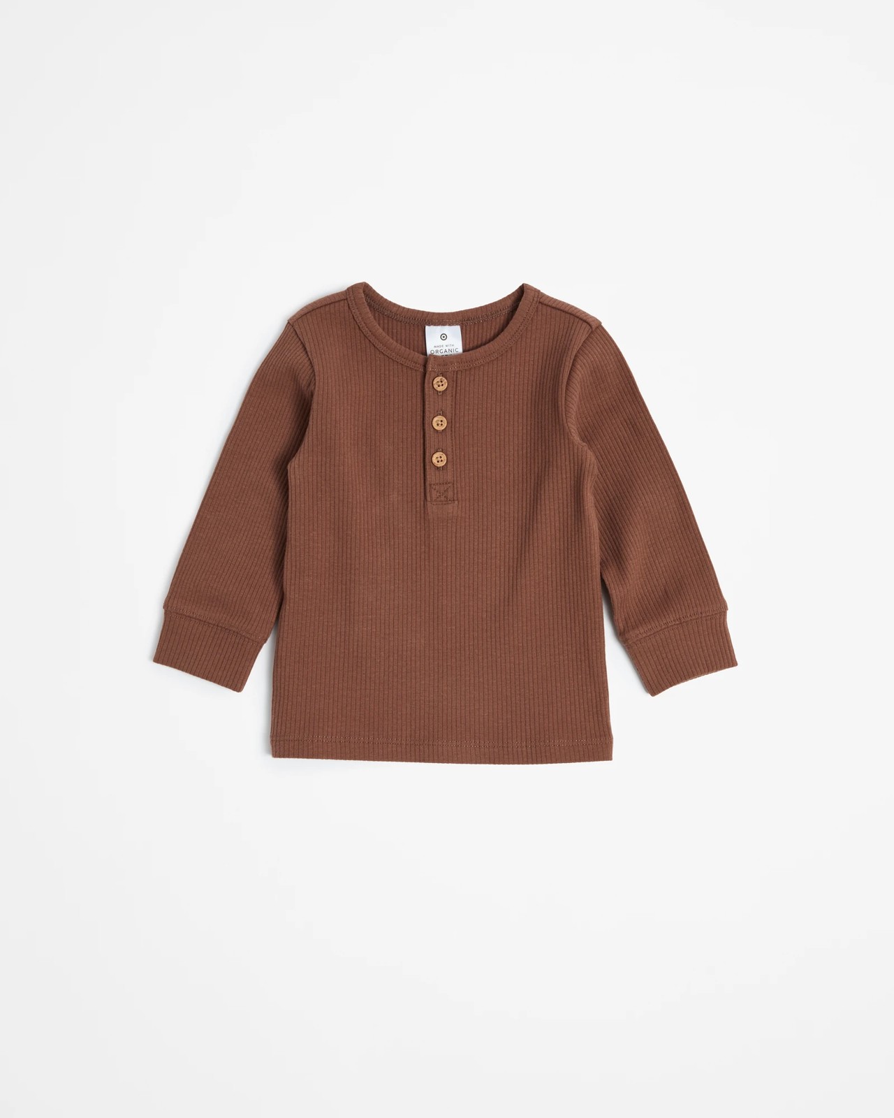 Baby Organic Cotton Rib Henley Long Sleeve T-shirt - Mustang