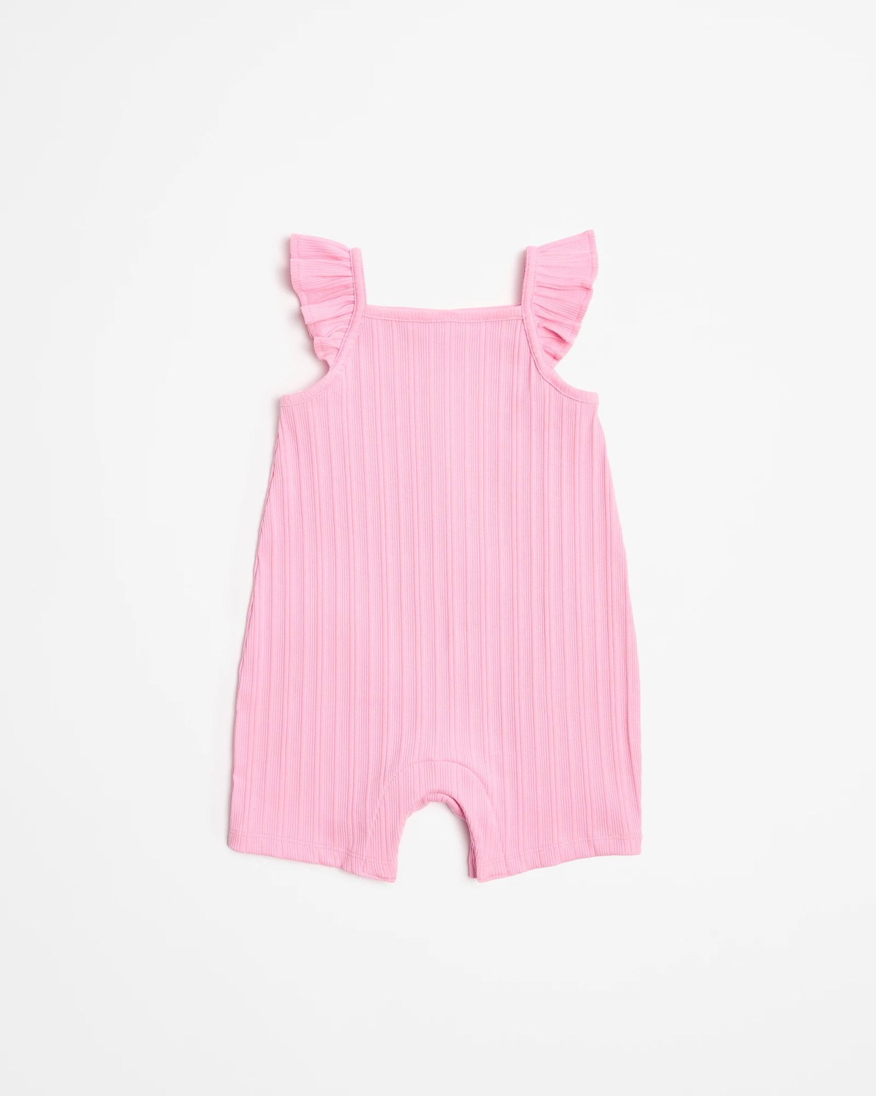Dress your little one in pure comfort with this baby rib romper. Made from soft cotton, it boasts a charming ribbed texture with adorable ruffles for added style. The square neckline and sleeveless design are perfect for warmer days, and the press studs make changing quick and easy. Perfect for both playtime and adventures this romper is an essential addition to your baby's wardrobe.