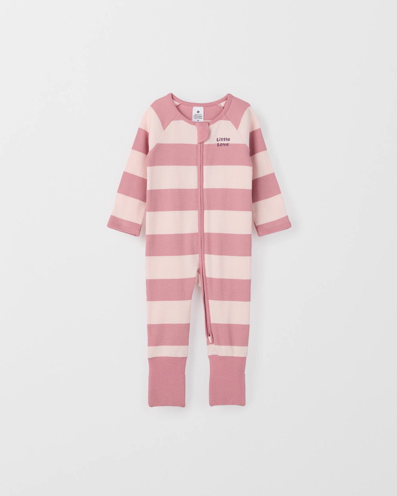 Baby Organic Cotton Rib Zip Footless Coverall - Mauve Stripe