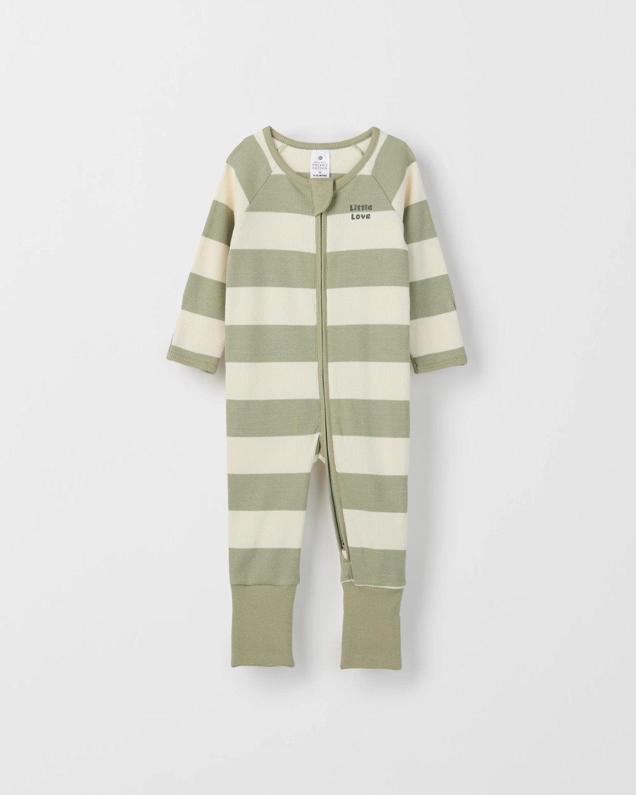 Baby Organic Cotton Rib Zip Footless Coverall - Sage Stripe