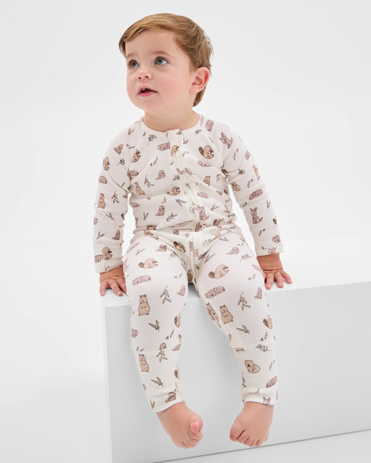 Baby Organic Cotton Rib Zip Footless Coverall - Australiana