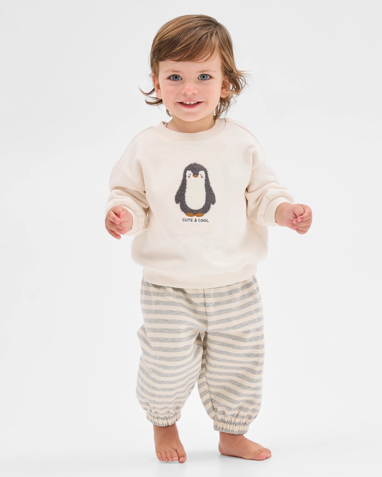 Treat your little one to all-day comfort with Baby Organic Cotton Seamed Front Trackpants. These trousers are made from a soft organic cotton blend with a gentle stretch, giving your baby the freedom to move, play and relax. The cosy fleece fabric and brushed finish keep them warm and comfortable throughout the day. Designed with an elastic waistband, these trackpants make dressing simple, while charming front seams and a useful back patch pocket bring style and convenience. Elasticated cuffs offer a secure fit for every adventure. Give your child the perfect combination of cosiness and style—add these sweet trackpants to their collection now.