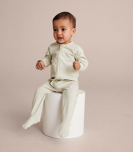 Crafted from certified organic cotton that's grown free from harmful chemicals, is soft to touch and comfortable to wear, comes the Baby Organic Cotton Stripe Coverall.
