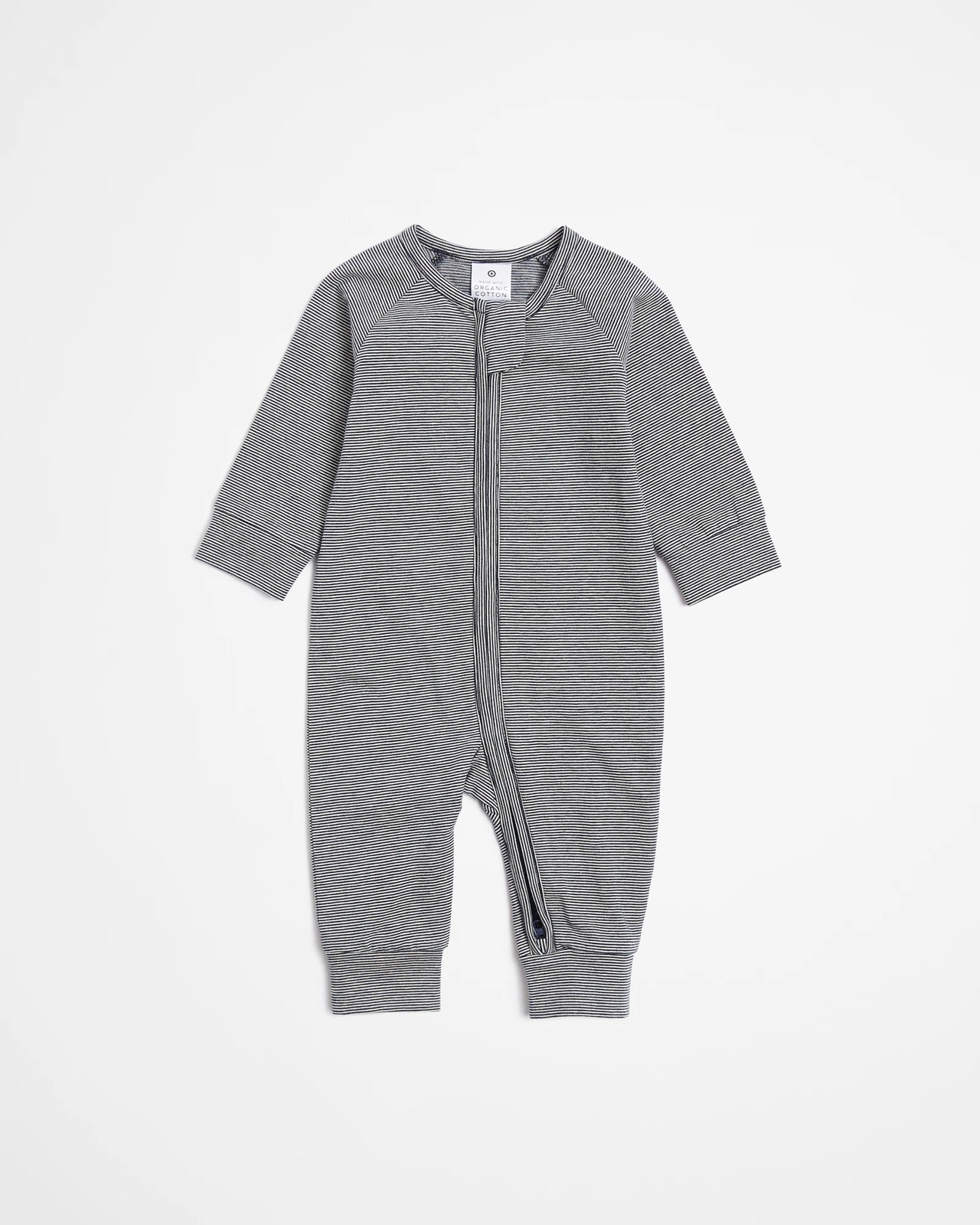 Discover the perfect blend of comfort and style for your baby with our Navy Stripe Organic Cotton Footless Coverall. Made from soft, organic cotton, this coverall boasts a comfortable fit while keeping your little one cosy with long raglan sleeves and ribbed cuffs. Embrace the simplicity and elegance that comes with its charming stripe design and round neck. Add to your baby's wardrobe today!