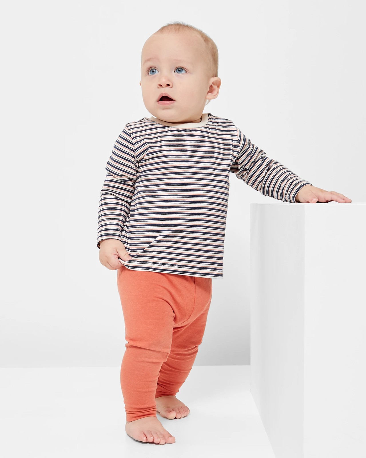 Introducing our delightful Striped Organic Cotton T-shirt, perfect for your little one. Crafted from the finest organic cotton, with a regular fit and a ribbed crew neck for all-day comfort. The charming all-over stripe print brings a touch of fun to your baby's wardrobe. Complete with long sleeves and a straight hem, our T-shirt is a must-have for your tiny trendsetter. Elevate their style with our premium quality garment.