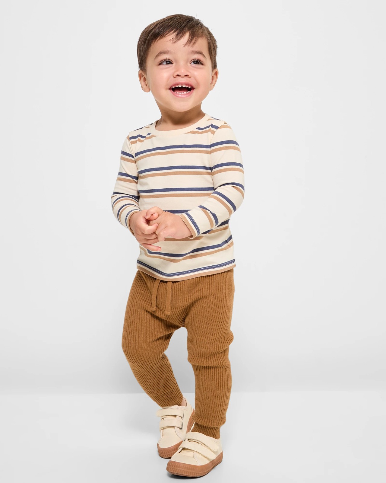 Outfit your little one in this delightful Baby Organic Cotton T-shirt with chic stripes. Made from soft and pure cotton, it's gentle on your baby's delicate skin. Featuring a ribbed crew neck and short sleeves, it combines comfort and style perfectly. The regular fit allows for easy movement, ideal for everyday adventures. Pair it with the matching leggings (sold separately) for an irresistibly cute ensemble. Grab one today and let your baby enjoy cosiness and cuteness in every wear.
