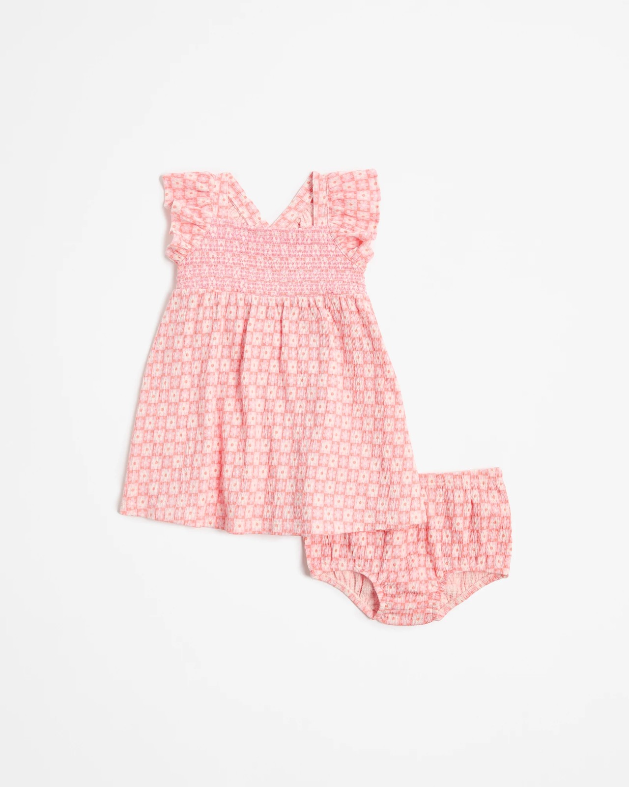 Baby Organic Cotton Textured Jersey Dress and Bloomer 2 Piece Set - Square Floral