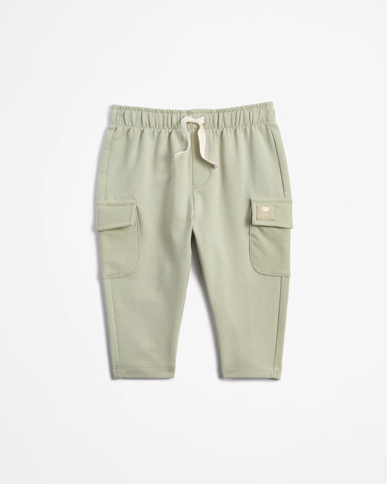 Introducing our Baby Utility Jogger Trousers in Desert Sage. These joggers are made from a comfortable cotton blend with a touch of stretch, ensuring your little one stays snug and able to move about with ease. Featuring a regular fit and an elastic waistband with a drawcord, they offer both comfort and a secure fit. The joggers come with large thigh pockets with fold-down flaps and a charming character tag appliquéd on the pocket flap for added appeal. Perfect for active days, these full-length trousers will quickly become a staple in your baby's wardrobe. Keep your baby stylish and comfortable during any adventure!