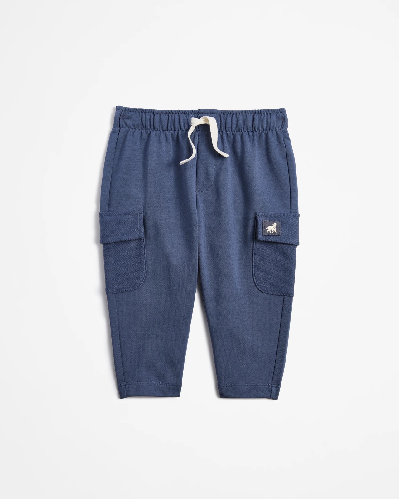 Discover ultimate comfort for your little one with our Baby Cotton Blend Utility Jogger Pants in Blue Indigo. Made from a soft cotton blend with a touch of stretch, these joggers offer a cosy and regular fit, perfect for daily adventures. The elastic waistband with a drawcord ensures a snug fit while allowing for easy on and off. Handy thigh pockets with fold-down flaps provide ample space for tiny treasures, and an adorable character tag adds a playful touch. Make every day stylish and comfortable for your baby with these versatile jogger pants.