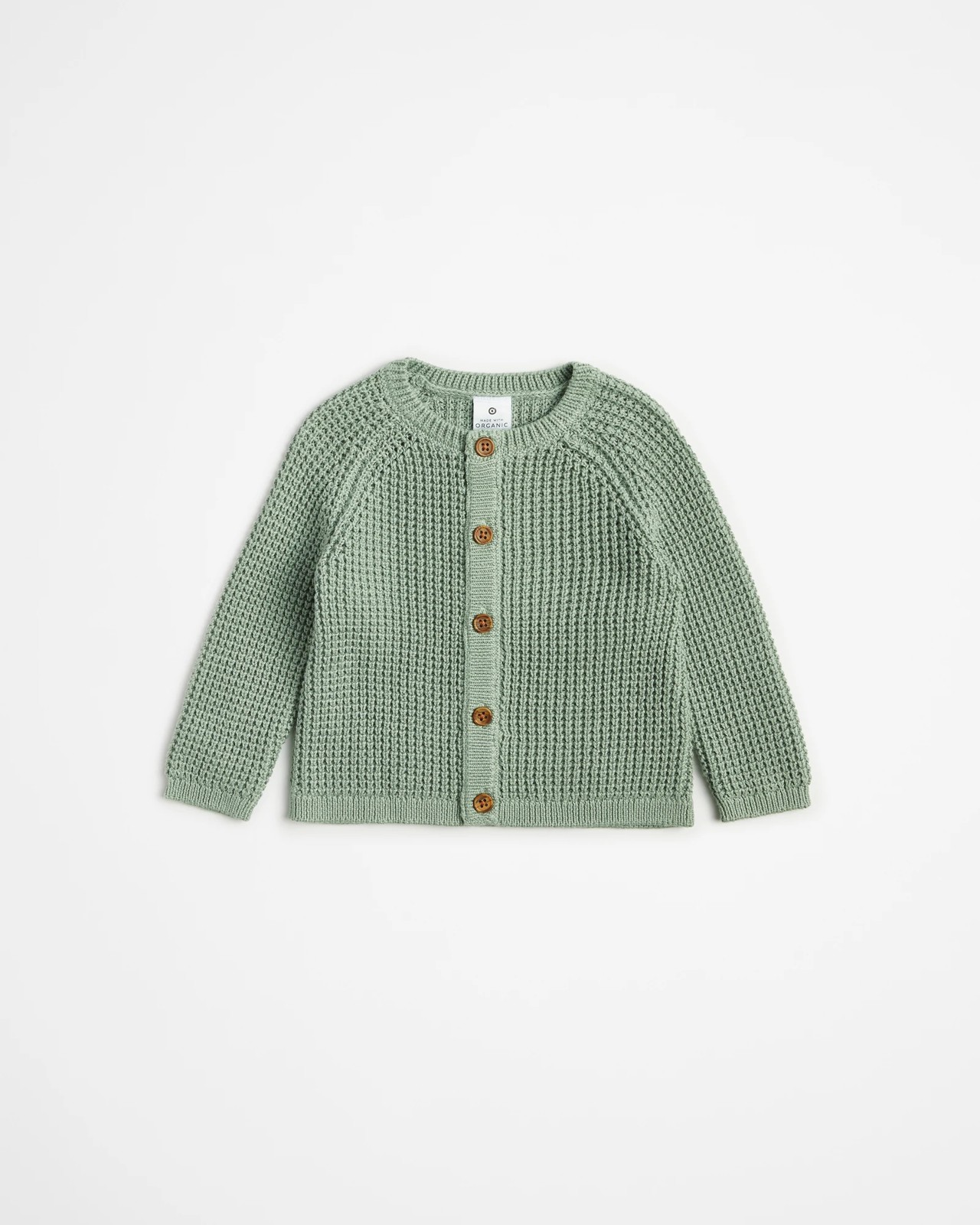 Keep your little one cosy and stylish with our Baby Organic Cotton Waffle Knit Cardigan. Made from soft organic cotton, this cardigan is perfect for delicate skin. The regular fit, round neck, and long raglan sleeves ensure comfort and ease of movement. Easily button it up at the front for a snug fit, making it great for layering over outfits. The straight hem adds a classic touch to this timeless piece. Don't miss out on adding this charming cardigan to your baby's wardrobe today!