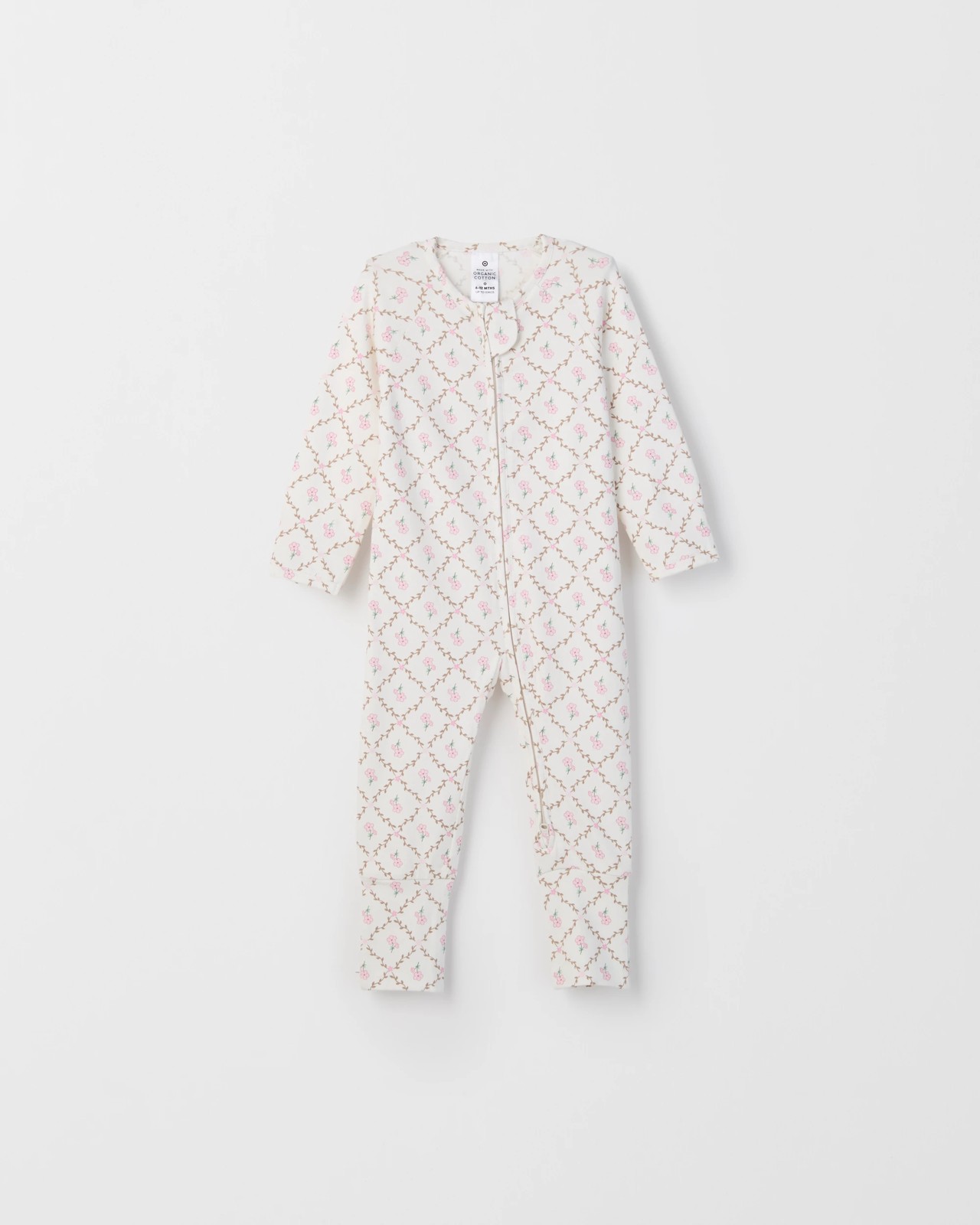 Baby Organic Cotton Zip Front Footless Coverall - Diamond Floral