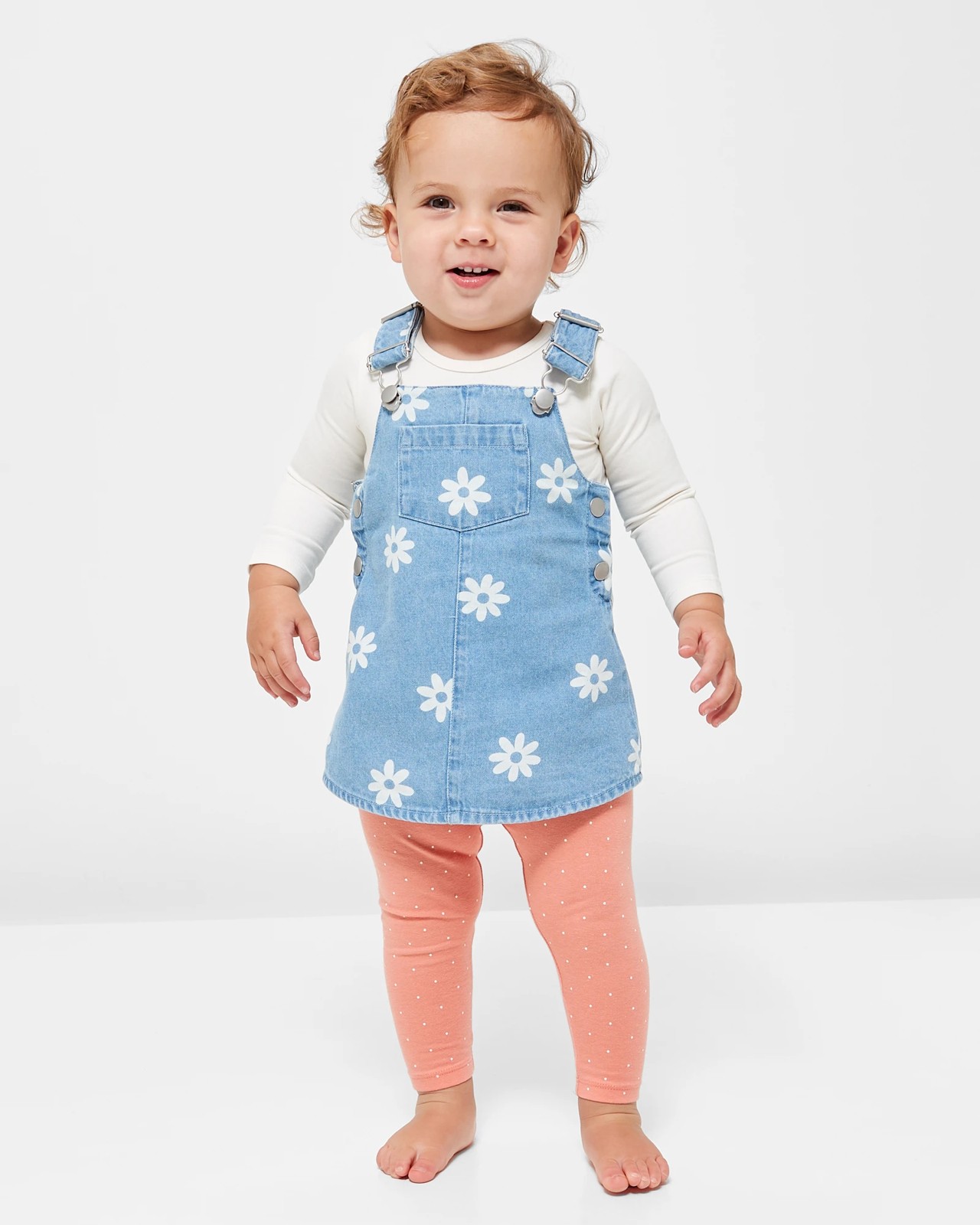 Imagine dressing up your little one effortlessly in our Floral Denim Baby Pinafore Dress & Bodysuit Set. Crafted for comfort, the Cotton rich set includes a pinafore dress with a trendy denim and floral print. The adjustable overall buckle straps make for a stylish statement while ensuring a snug fit. Highlighted by a single front pocket and snap buttons at the hips, our bodysuit included features round neck, long sleeve, and convenient press studs to crotch. Indulge your baby in style with our exclusive set now!