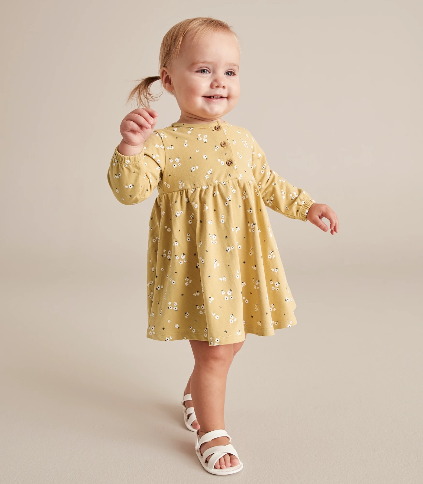 A great addition to bubs wardrobe comes the Baby Print Dress, featuring a crew button down neck, long sleeves with elastic cuffs and crafted from soft cotton for all day comfort.