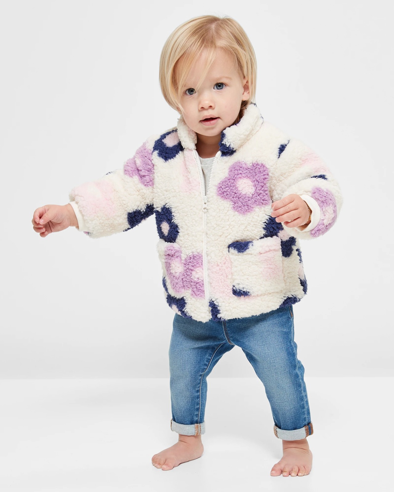 Welcome your little one to cosy warmth with our Teddy Fleece Baby Jacket! Delight in the delightfully plush feel that encases your baby, ensuring a snug fit. Featuring all-over teddy fleece detail, a convenient zip closure, a sleek stand collar, distinctive patch pocket, and ribbed cuffs for comfort. Keep your precious one wrapped in comfort and style with a touch of cuteness with our Teddy Fleece Baby Jacket today!