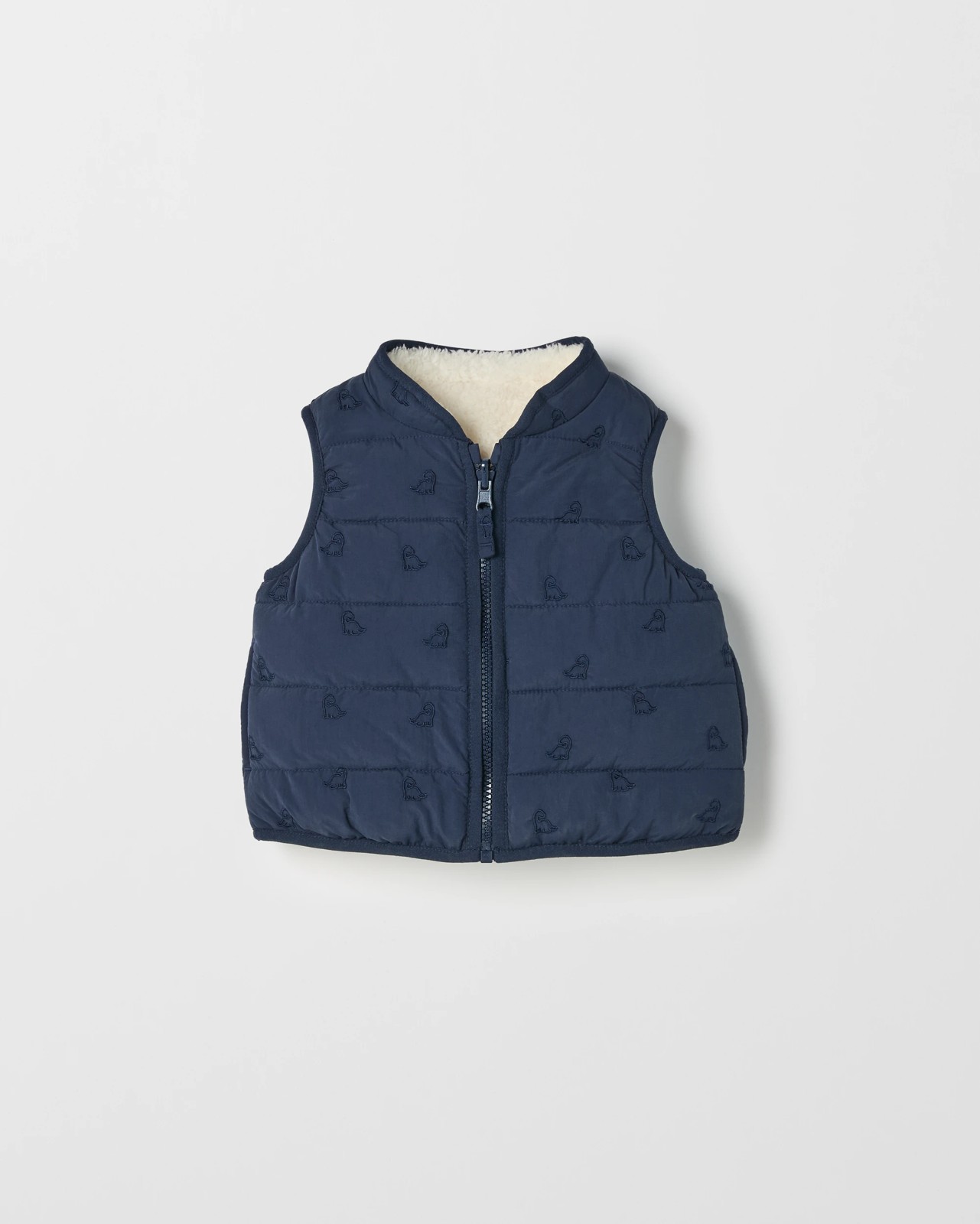 Give your little adventurer warmth and cheerful style with the Baby Reversible Sherpa Puffer Vest. With two lovable looks in one, you can easily switch between soft sherpa fleece and a fun corduroy side featuring playful dino embroidery. The handy zip front with a simple puller makes dressing quick and easy, while the regular fit gives your child plenty of comfort and freedom to move. Thoughtful quilting and a straight hemline add to its charm, making it an ideal layer for playtime, strolls, or cuddles at home. Make outings cosier and more delightful—add this versatile vest to your baby’s favourites today.
