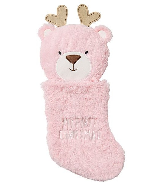Get ready for Baby's First Christmas with this beautifully designed Christmas stocking. Christmas is full of excitement and anticipation and what better way to introduce Christmas to your little one than with this fun stocking to store gifts for Christmas morning. With its soft texture and antler ears, it will make a cosy addition to the mantle during the festive season.