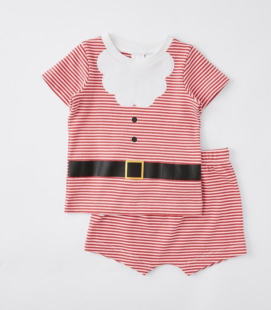 Your bubs will look gorgeous and festive in this red and white stripe baby Christmas Santa Claus pyjama set - complete with beard and belt detailing!