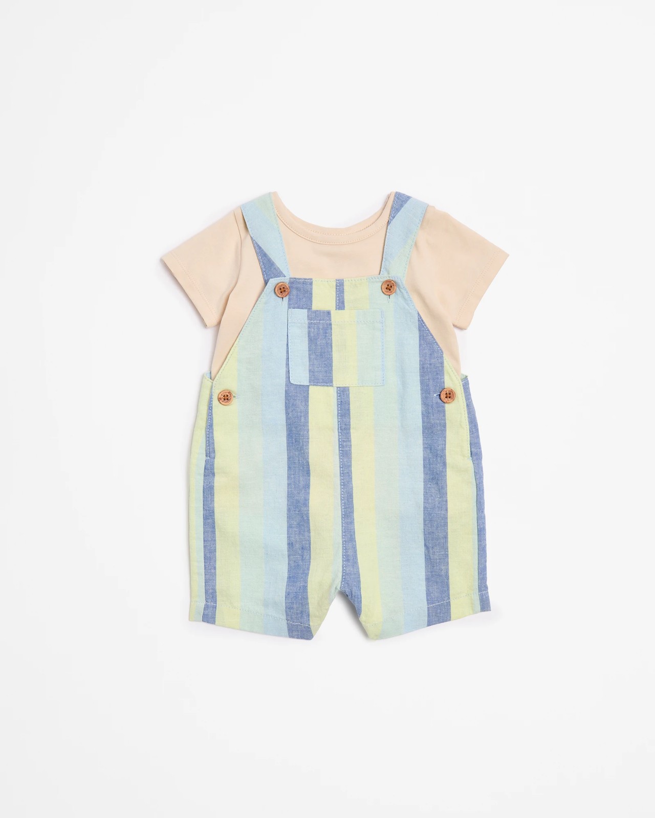 Discover the adorable Baby Shortall & Tee Set, perfect for keeping your little one stylish and comfortable. This charming 2-piece ensemble features a playful printed shortall with adjustable buttoned shoulder straps and front patch pockets, paired with a soft cream t-shirt. Made from a linen and cotton blend, it ensures your baby stays cosy throughout the day. Whether it's for playtime or a casual outing, this set is a wonderful addition to your baby’s wardrobe. Grab yours today and add a touch of cuteness to their everyday wear!