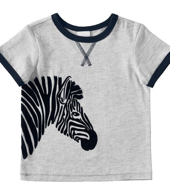 Our short sleeve Zebra flock print print T-shirt features a snap stud closure on one shoulder and is crafted in soft, breathable cotton.- Large zebra flock print on front.