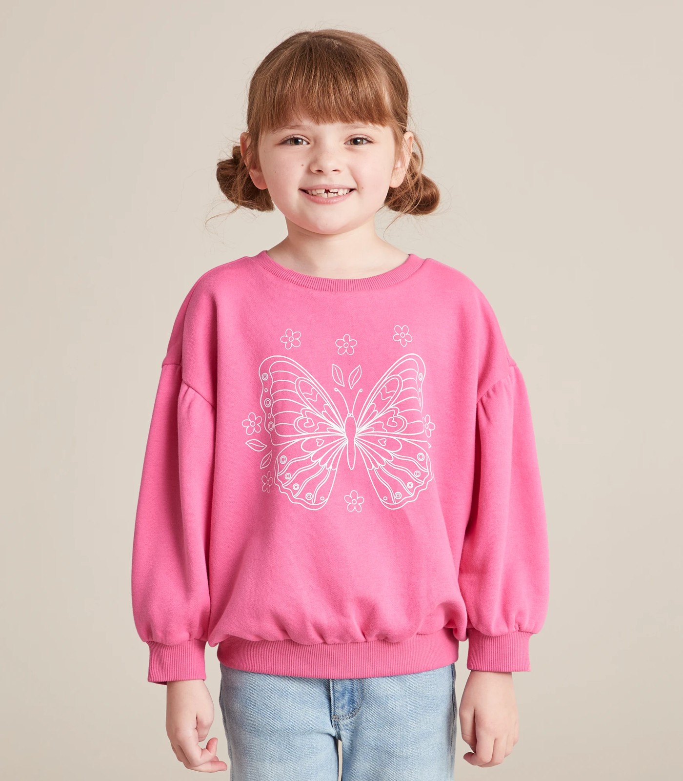 Treat her wardrobe to this Balloon Sleeve Jumper. Made from a cotton poly blend, it features a ribbed crew neck, gathered shoulder and long balloon sleeves with ribbed cuffs. Finished with a large print to the chest, ribbed straight hem and fleece lining for extra warmth and comfort. Perfect for those colder days.