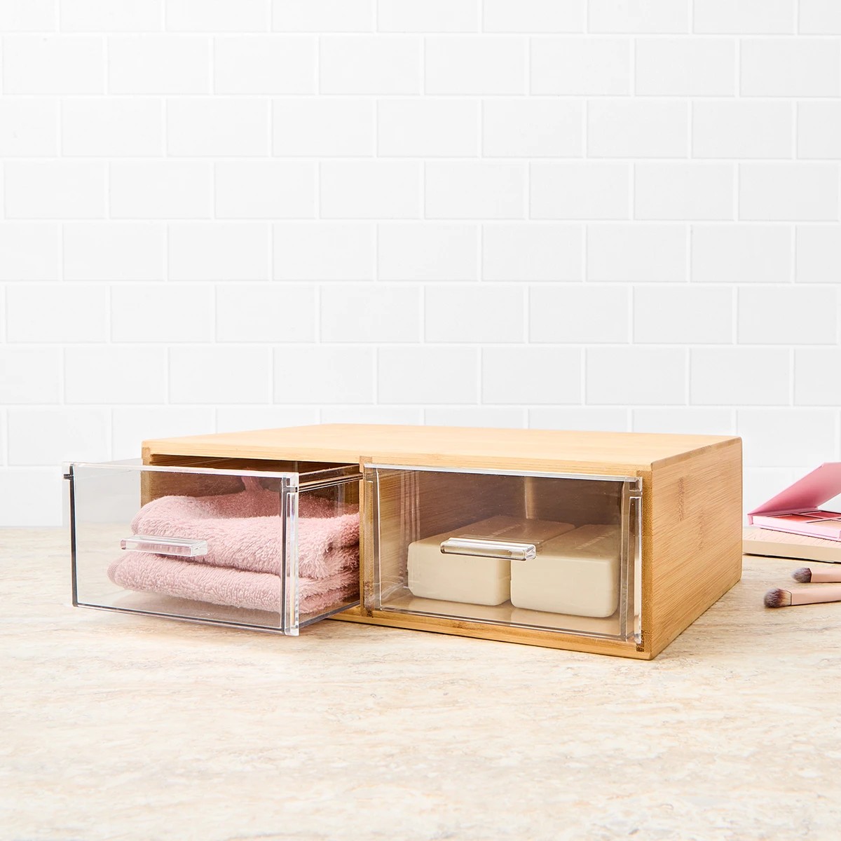 If you're looking to tidy up any space in your home, the Bamboo and Plastic Medium Two Drawers from Anko is your go-to solution! These drawers not only serve the practical purpose but also add a touch to any decor. With a sleek design featuring bamboo and plastic materials, this storage solution is perfect for your makeup essentials, bathroom bits, or even study supplies. Measuring at just the right size, it's compact yet spacious enough to hold all your belongings. Transform your living space and add a chic organisation tool to your collection. Don’t wait – bring tidiness into your life today!
