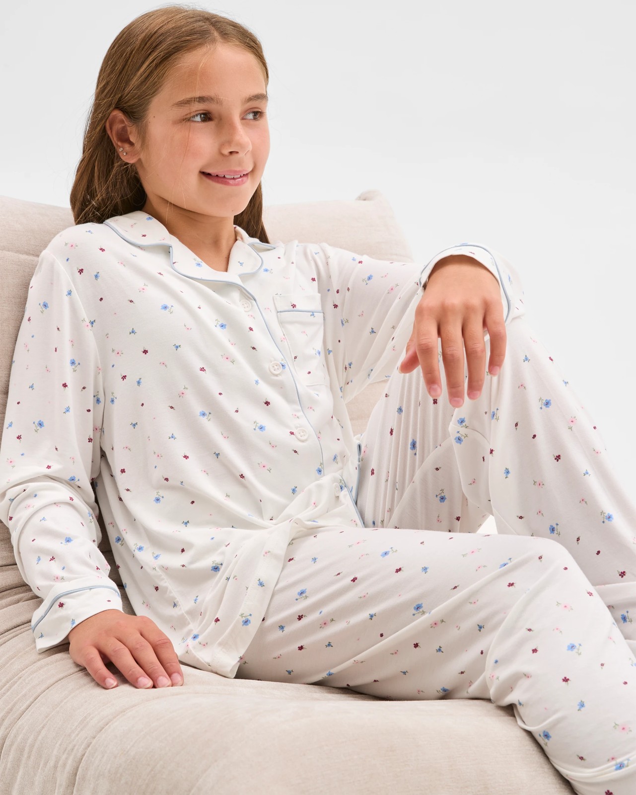 Bamboo Older Girls Button Through Pyjama Set - White Floral