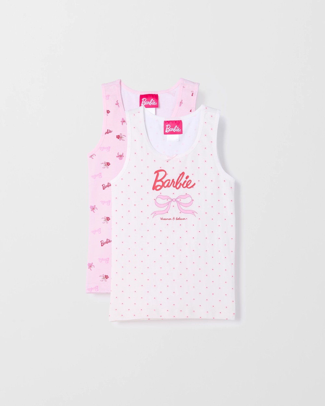 Let your child enjoy effortless comfort with the Barbie Australian Cotton 2 Pack Singlet. Made from gentle Australian cotton blended with elastane, these singlets offer soft stretch and an easy, relaxed fit. The sleeveless design and regular cut ensure complete freedom to play, while the crew neckline is stylishly finished with a cute satin bow. Perfect for layering or wearing alone, the versatile design with a straight hemline suits any occasion. Add a touch of fun and practicality to everyday essentials—treat her wardrobe to this lovely duo now.
