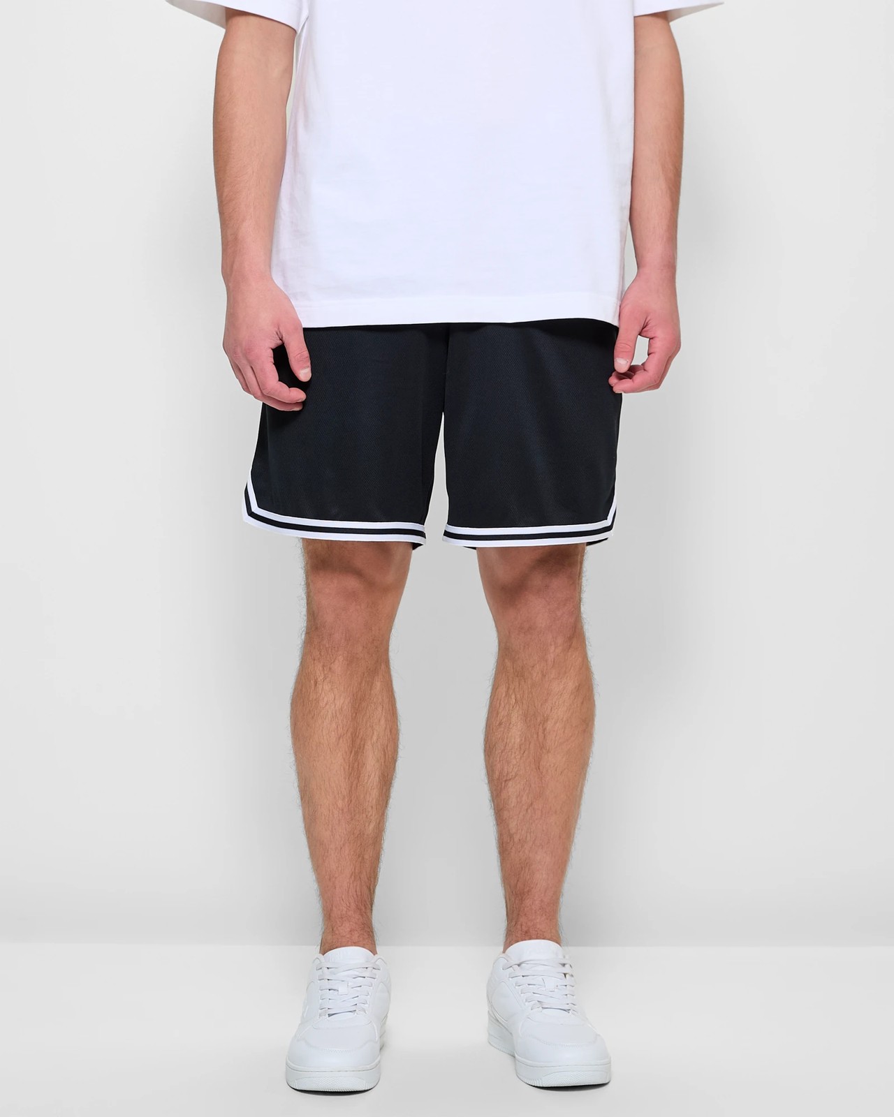 Step up your game with our Basketball Shorts by Commons. Made from recycled polyester, these shorts ensure maximum comfort and lasting wear on and off the court. The relaxed fit and thick elastic waistband with an inner drawstring provide a perfect fit every time. With side seam pockets and a stylish mesh overlay, they are both practical and trendy. These shorts feature a unique straight hemline with side triangle cut outs and striped edging that add a touch of flair. Whether you're practising or just lounging, these shorts are your perfect companion. Grab yours now and experience unmatched comfort and style.