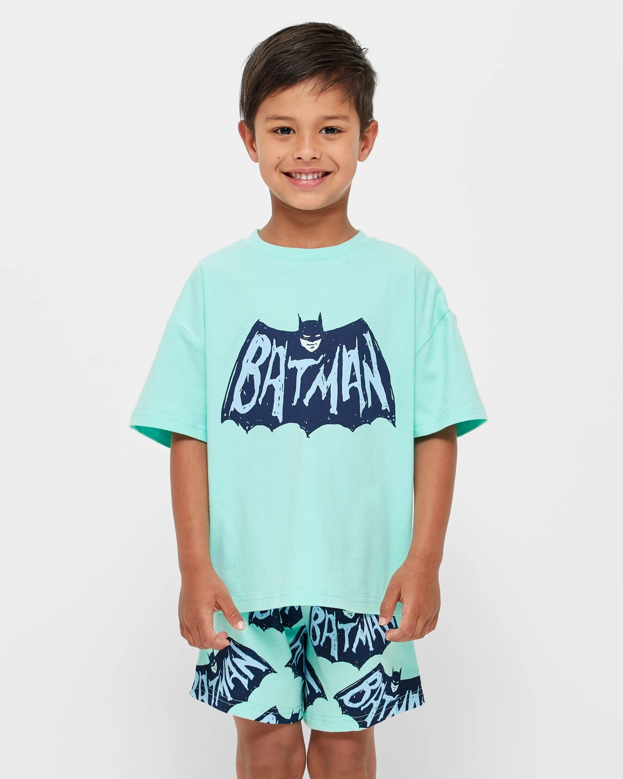 Get ready for a heroic night's sleep with the Batman Cotton Pyjama Set. Made from a soft and comfortable cotton, this 2-piece set features a large Batman print on the chest, perfect for any fan of the Caped Crusader. The ribbed crew neck and short sleeves provide a relaxed and comfortable fit, while the straight hem adds a stylish touch. The set also includes matching all over print shorts with an elastic waistband for added convenience. Whether battling your dreams or just relaxing at home, this pyjama set will keep your little one comfortable and stylish. Order the Batman Cotton Pyjama Set now and unleash his inner superhero!