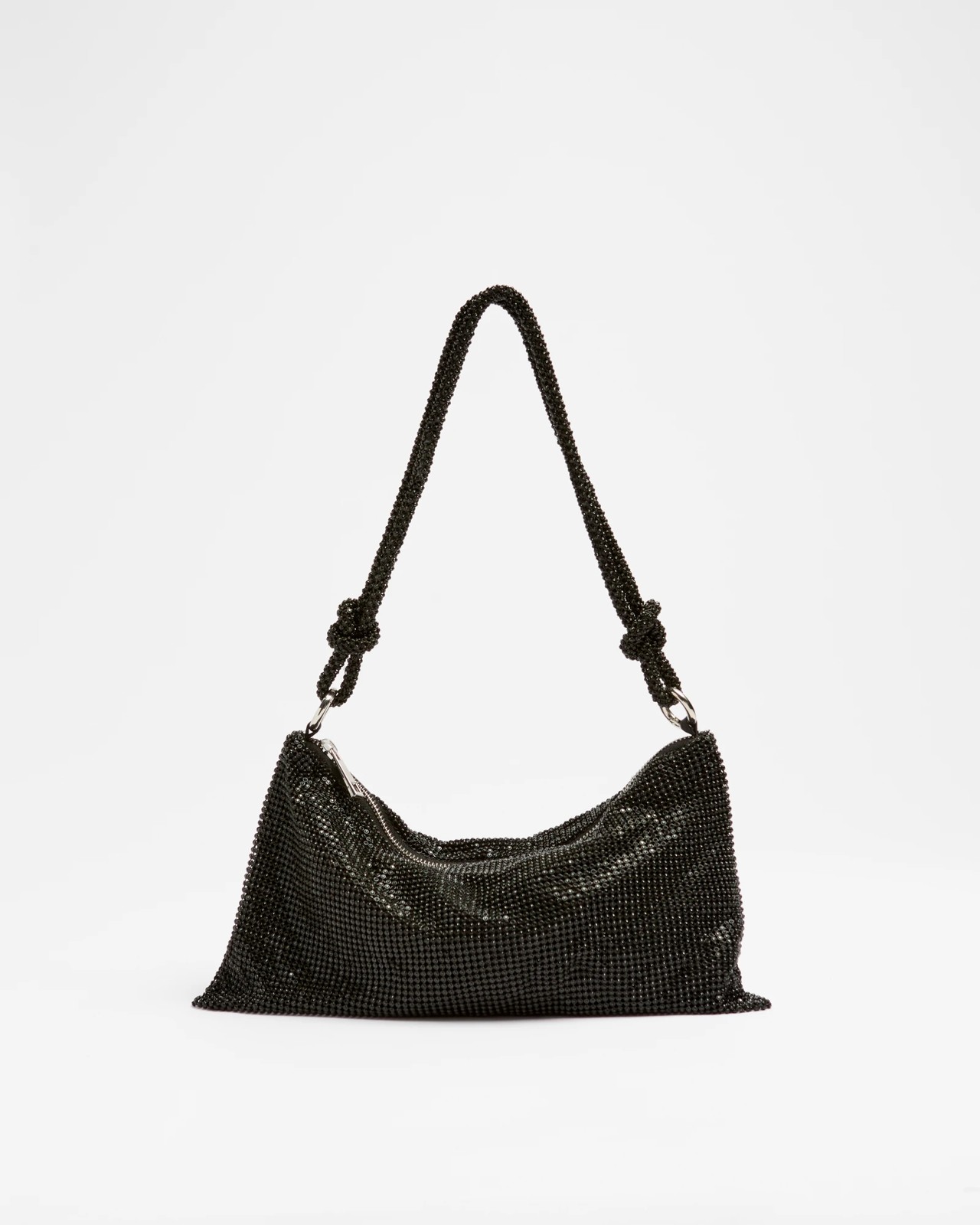 Step out in style with the beautiful Beaded Bag by Lily Loves. The bag is made from a combination of aluminium and glass, creating a truly unique and elegant piece. Its spacious interior is lined for added convenience. The bag boasts a large rectangular shape adorned with dazzling diamante beading, making you stand out in any crowd. Carrying your essentials has never been so chic with the attached knotted double straps handle featuring matching diamante beading. Secure your belongings with ease using the top zip closure with a stylish pull toggle. Elevate your fashion game with the Beaded Bag and make a statement wherever you are!