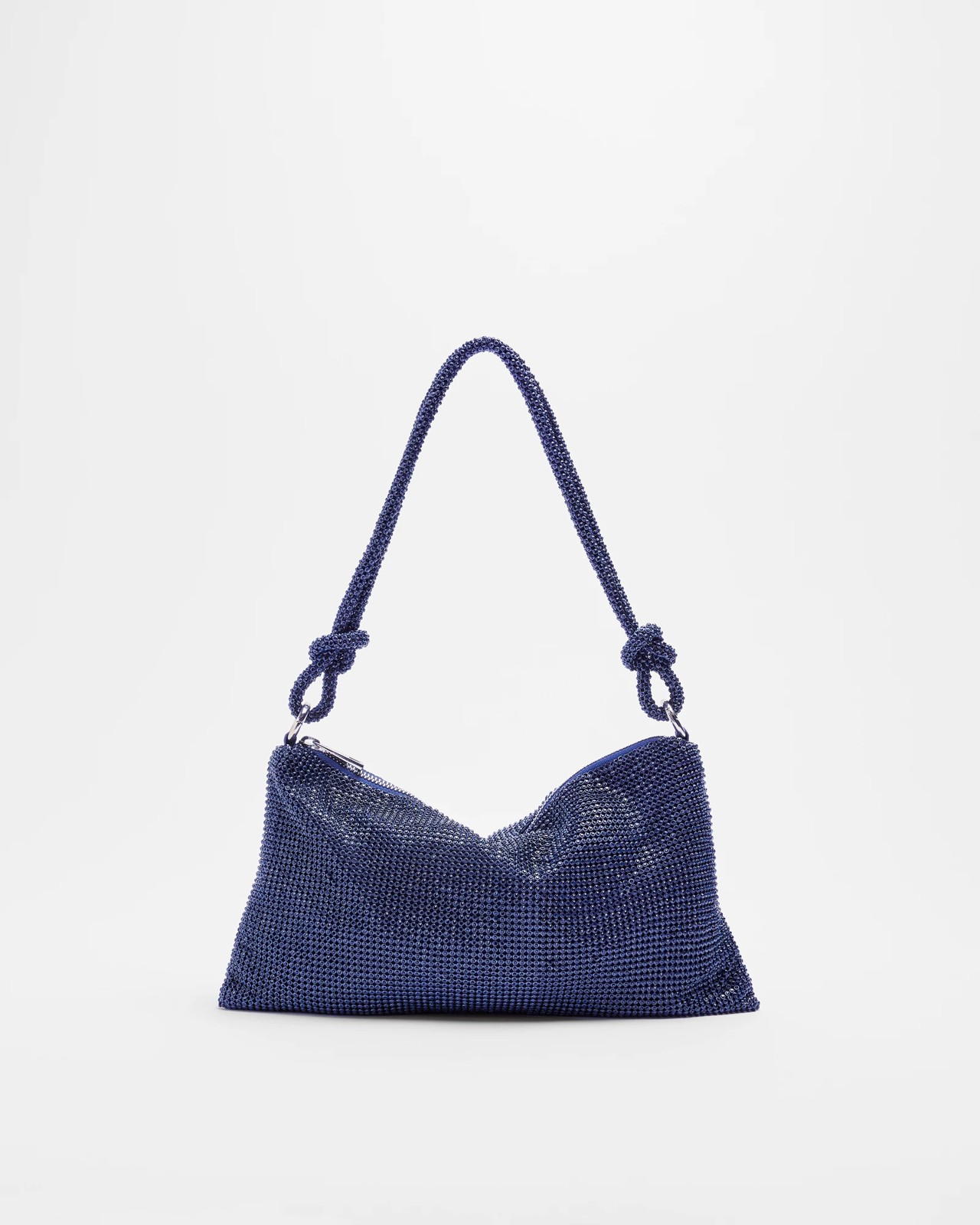 Step out in style with the beautiful Beaded Bag by Lily Loves. The bag is made from a combination of aluminium and glass, creating a truly unique and elegant piece. Its spacious interior is lined for added convenience. The bag boasts a large rectangular shape adorned with dazzling diamante beading, making you stand out in any crowd. Carrying your essentials has never been so chic with the attached knotted double straps handle featuring matching diamante beading. Secure your belongings with ease using the top zip closure with a stylish pull toggle. Elevate your fashion game with the Beaded Bag and make a statement wherever you are!