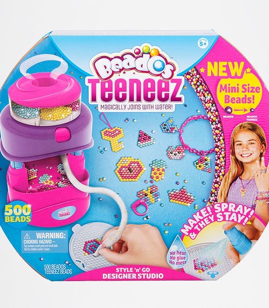 Now you can create even cuter jewellery, bag tags and more with the Beados Teeneez Designer Studio! Load the maker with the coloured mini beads. Simply choose your design template, pop in your Teeneez Beads, then just spray and they stay! So go small and make more! Make all types of cool jewellery from rings, bracelets, lockets and necklaces! So much fun to make, wear and share!