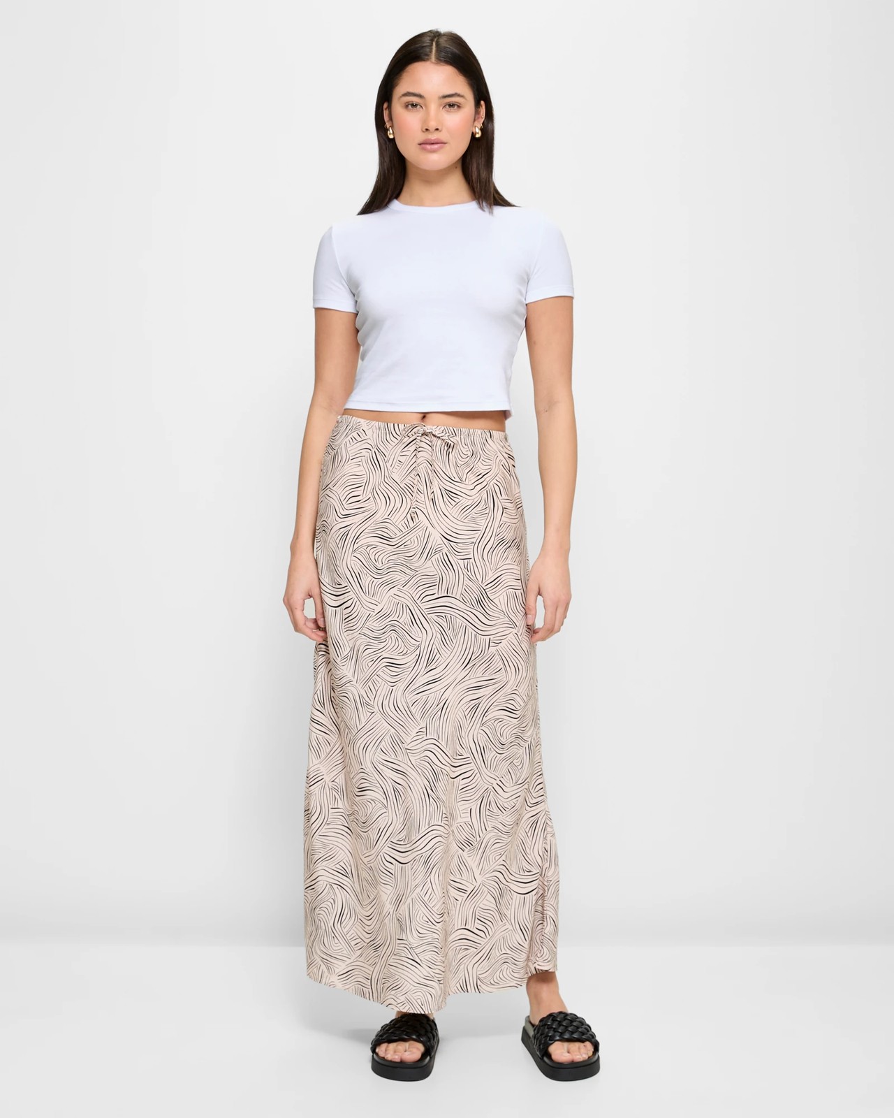 Introducing the gorgeous Bias Cut Midi Skirt from the Lily Loves collection. Crafted from a luxurious blend of viscose and nylon, this skirt is designed to dazzle. The all-over textured material adds a touch of glamour to any outfit. With its regular fit and neutral colourings, it is versatile enough to be dressed up or down for any occasion. The skirt features a thin elastic waistband with drawstring closure for a comfortable fit. The bias cut gives it a flattering silhouette, while the straight hemline adds a classic touch. Complete your wardrobe with this must-have midi-length skirt. Order now and elevate your style to new heights!