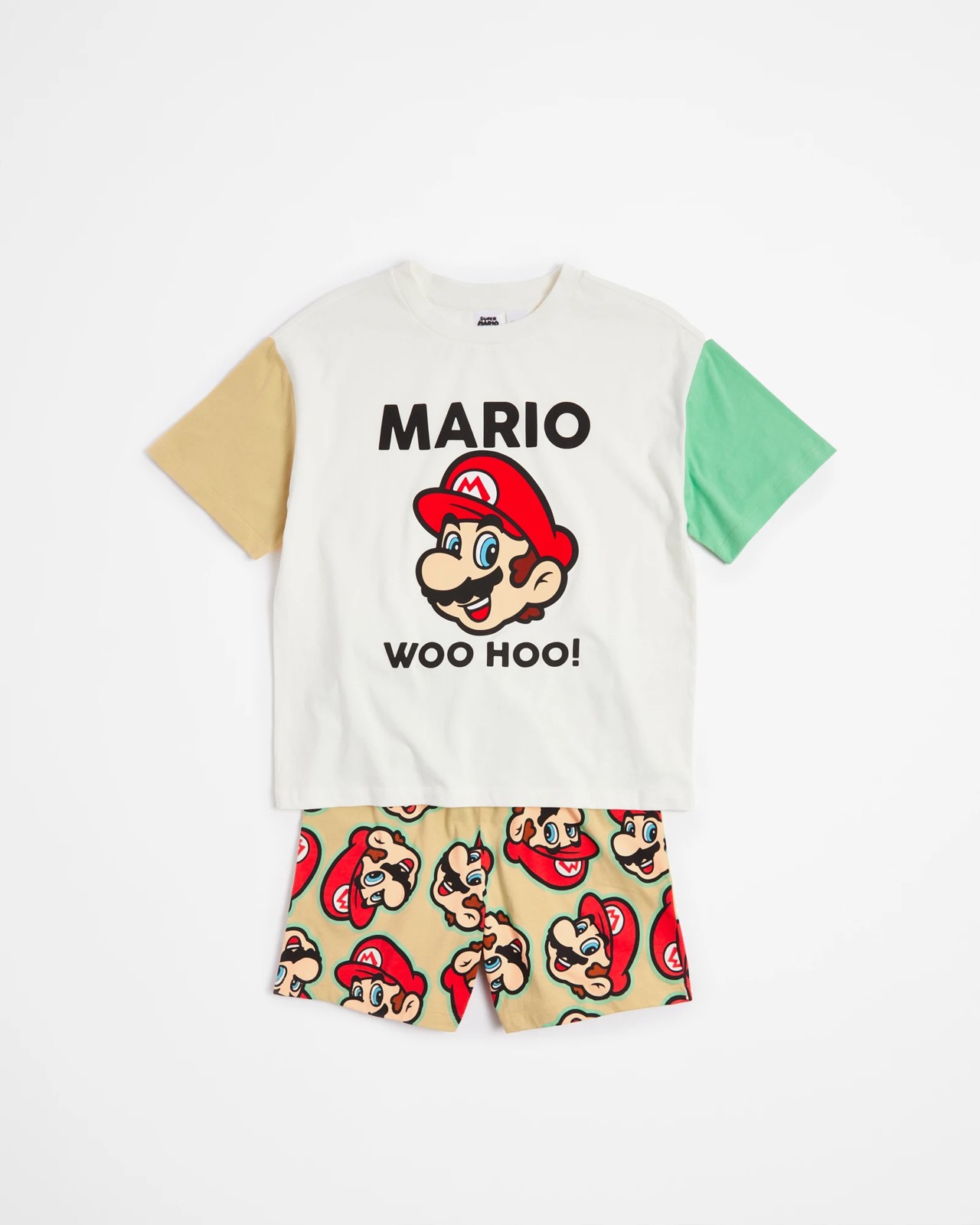 Introducing our Big Kids Unisex Family Matching Super Mario Cotton Pyjama Set! Made from a soft cotton fabric, this two-piece set guarantees ultimate comfort and style. Get ready to embark on a dreamy adventure with our exclusive Super Mario print on the chest. The ribbed crew neck and short sleeves provide a relaxed fit for a good night's sleep. Complete the look with the matching all-over print shorts featuring an elastic waistband. Whether you're a Mario fan or want to surprise your loved ones with a matching sleep set, this pyjama set is perfect for cosy nights in! Sold separately as a family matching sleep set.