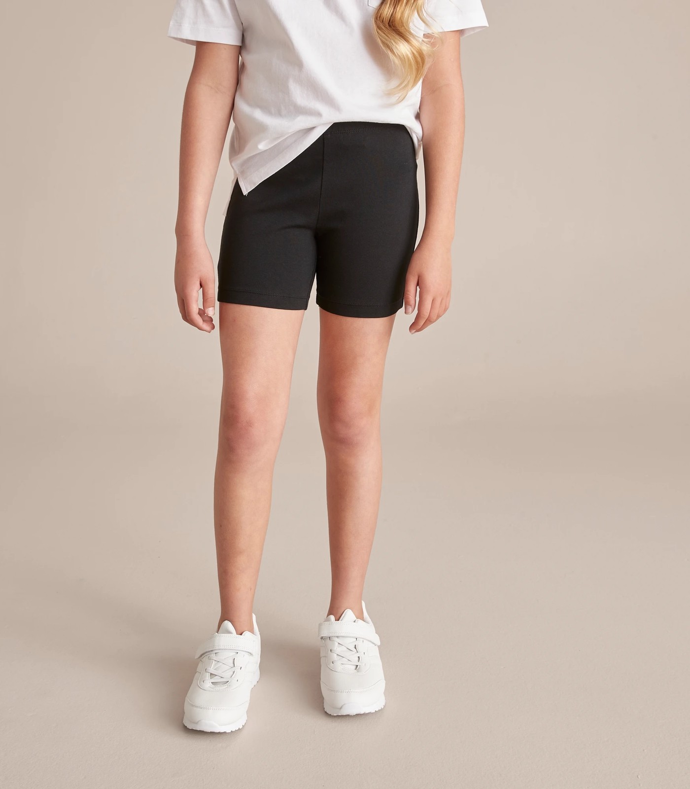 Cotton rich for breathability, these short length bike shorts feature an elastic waist for comfort and are perfect for wearing on their own, or under a netball skirt or school dress.