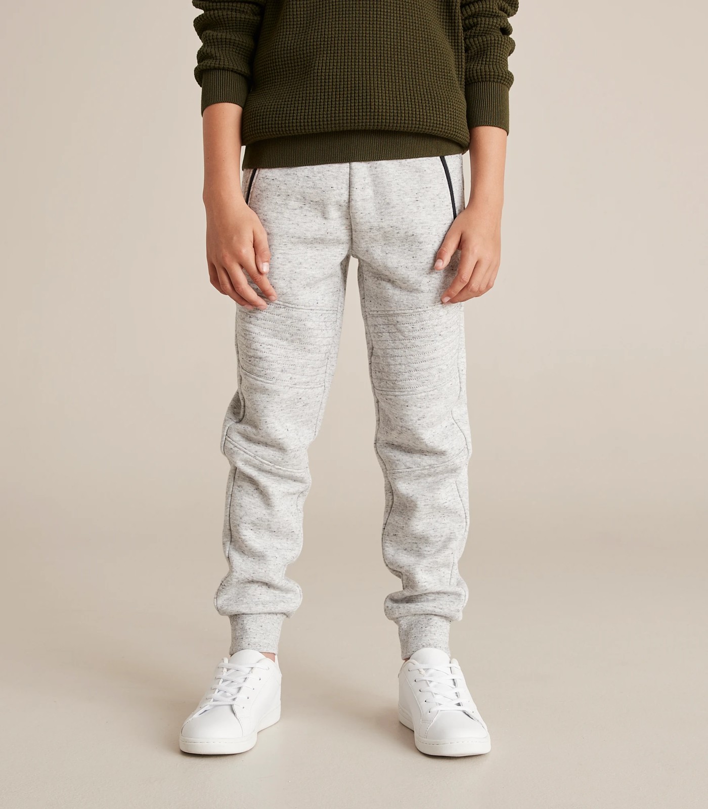 A great addition to his wardrobe comes the grey marle Biker Trackpants, featuring a ribbed elastic waistband with drawcord, side zip pockets and fleece lining for extra warmth and comfort.