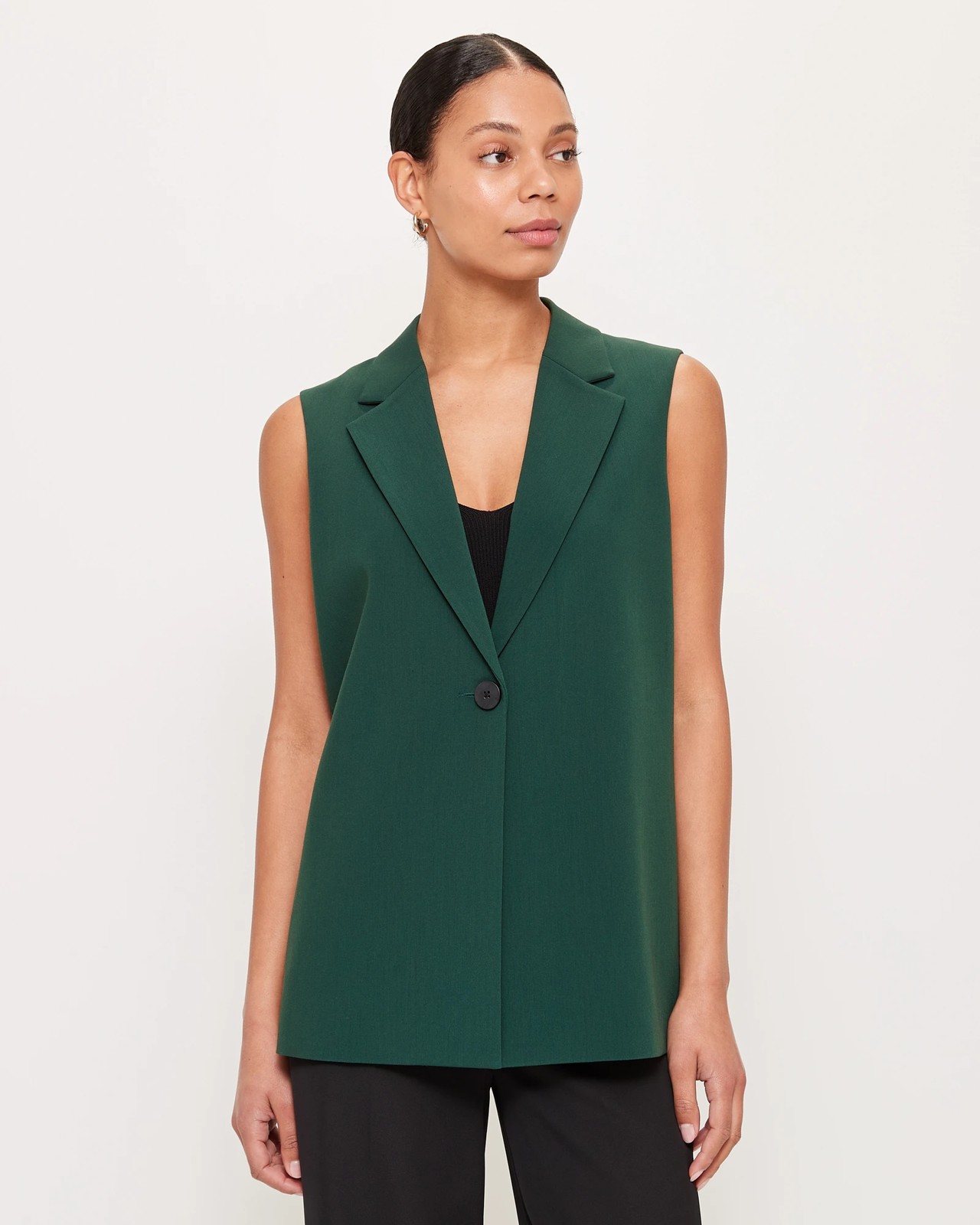 A great addition to your formal wear that can be worn open or closed, the Preview blazer vest features a deep v-neckline, sleeveless design, is fully lined, has a longline length and has a button up front for an easy pull on.