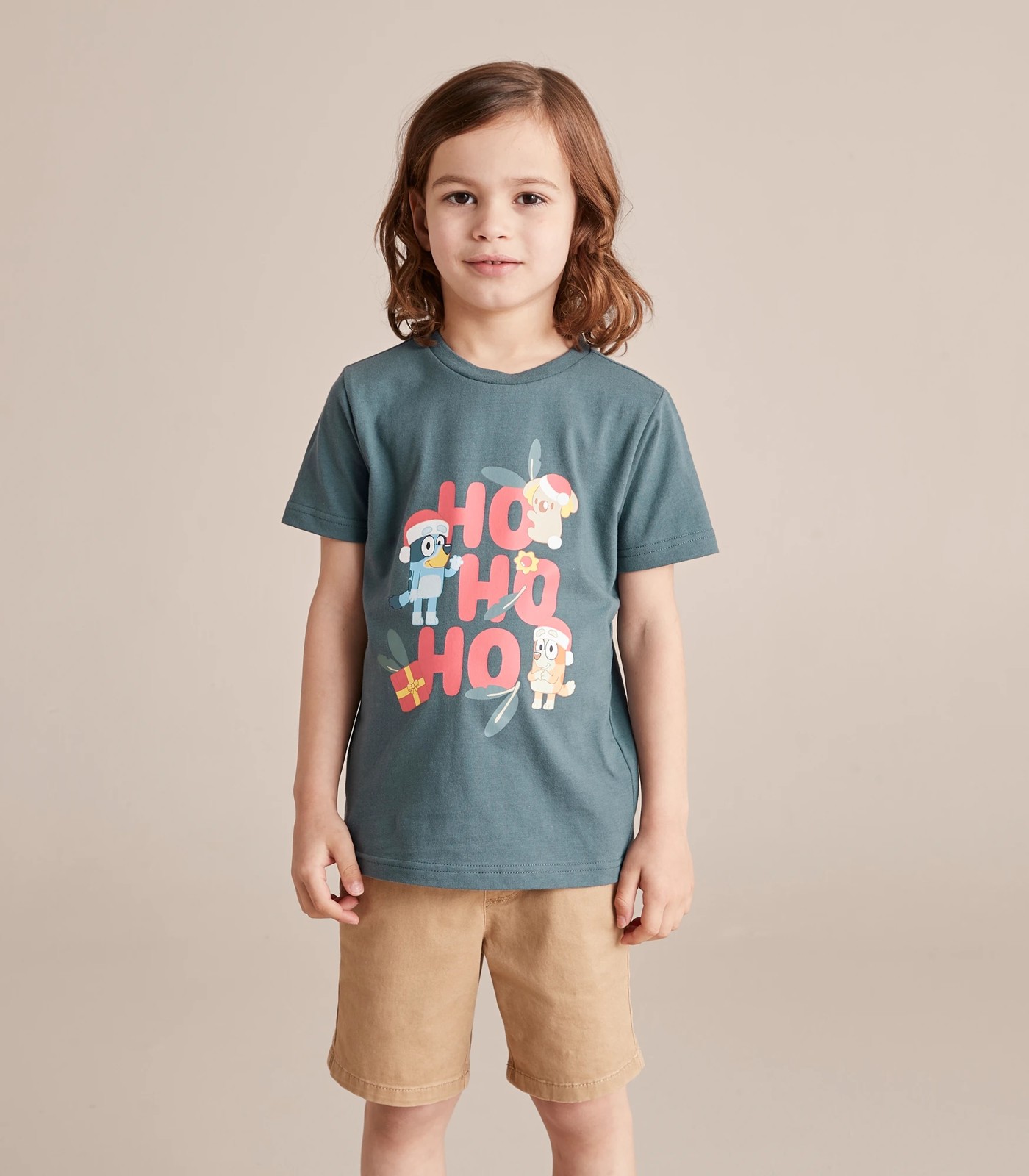 Great for the festive season, comes the dark slate Bluey Christmas T-shirt featuring a crew neck, short sleeevs, large Christmas Bluey print to chest and crafted from soft cotton for all day comfort.