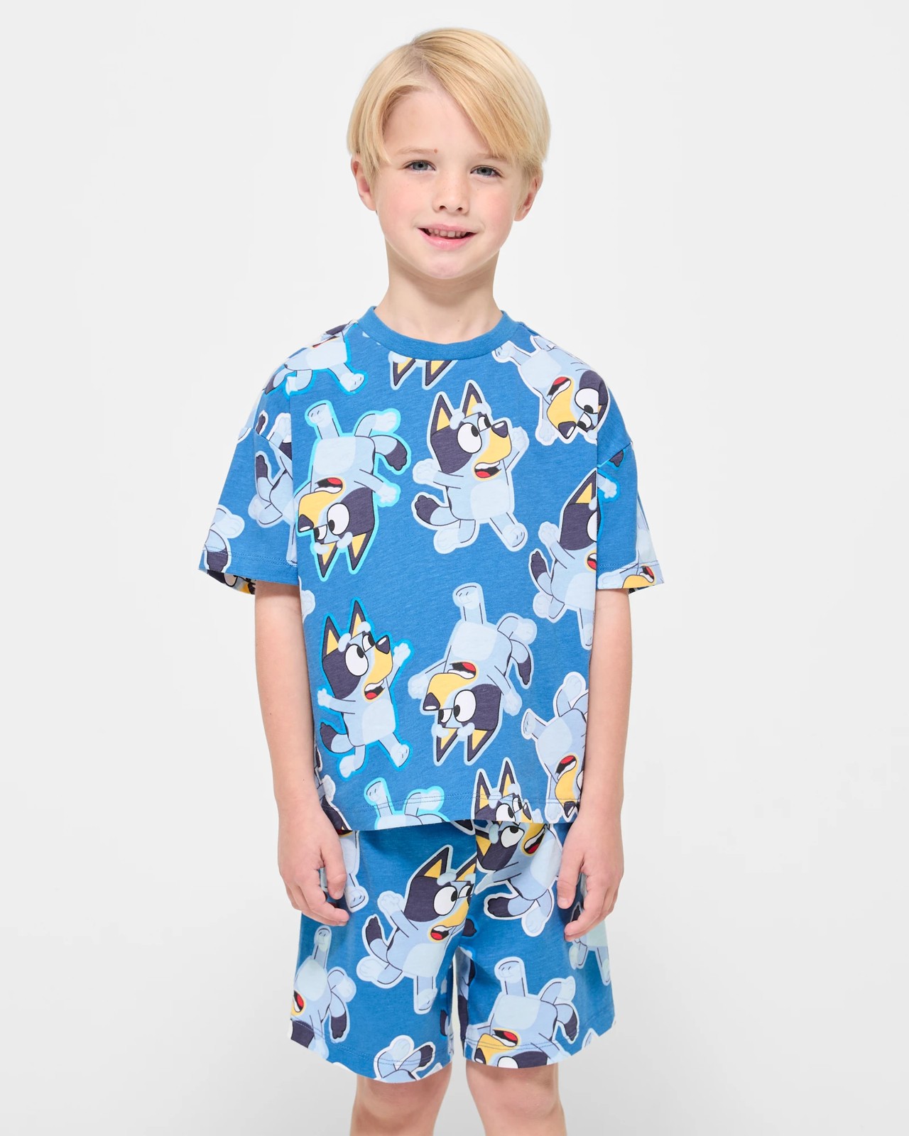 Treat your little one to the ultimate comfort and fun with our boys' Bluey sleep set. Made from cotton fabric, this set ensures a snug and cosy night's sleep, perfect for the cooler nights. The regular fit design includes a charming short-sleeve top featuring an all-over Bluey print and matching shorts with a comfortable elastic waistband. Perfect for Bluey fans, this pyjama set combines fun and practicality. Make bedtime their favourite time with this adorable sleepwear set. Order now to bring a smile to their face!
