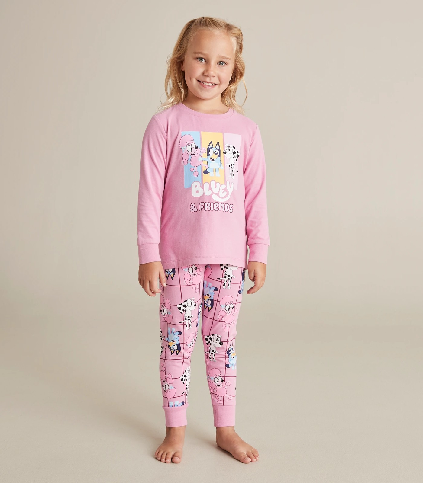 Fans will sleep blissfully in the great value 2 piece Bluey Cotton Pyjama Set, featuring a long sleeve top with large Bluey and Friends print to chest and matching all over print pants, crafted from soft cotton for all night comfort.