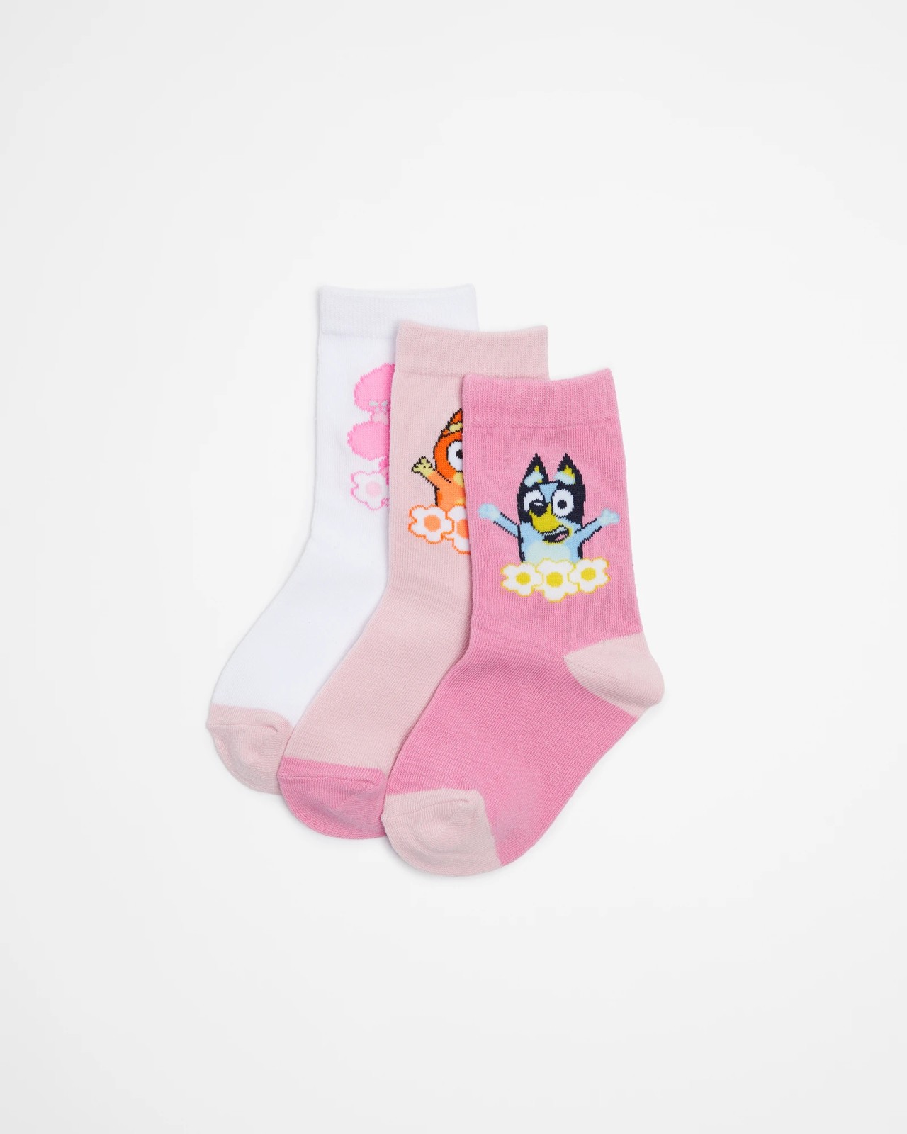 Introducing the perfect way to add some fun and style to any outfit! Our 3 Pack Bluey Crew Socks feature a cotton polyester blend that will keep kids comfortable all day long. With a variety of Bluey prints, these socks come in a pink colorway that is sure to make any little girl smile. Perfect for everyday wear, these socks are sure to become her go-to accessory!