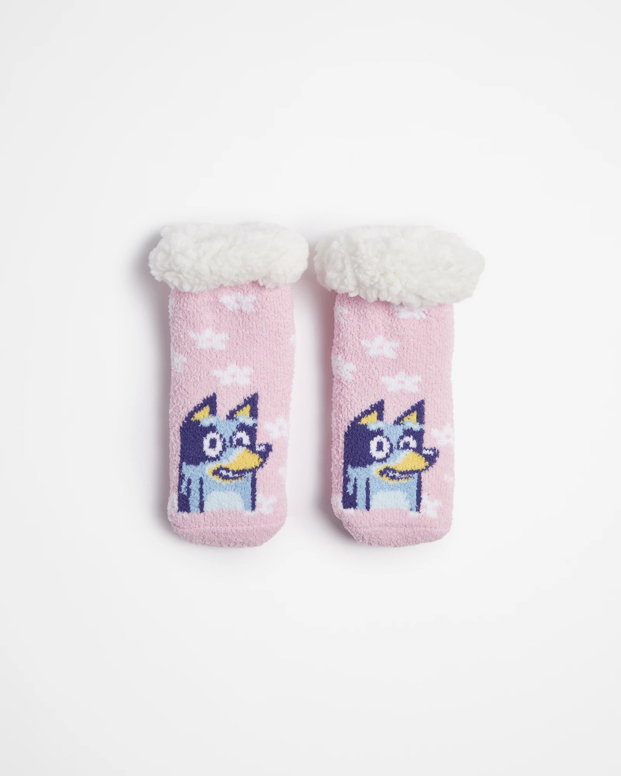 Experience ultimate comfort with our Bluey Fleece Home Socks. Imagine sinking your feet into plush, fleece-lined socks that keep you cosy on chilly days. With a delightful Bluey pattern and playful pink hues, these socks are not just about warmth but also style. The grip dots on the sole ensure you can walk around without any slips. Perfect for relaxing at home, treat yourself or a loved one to these adorable, snug socks today!