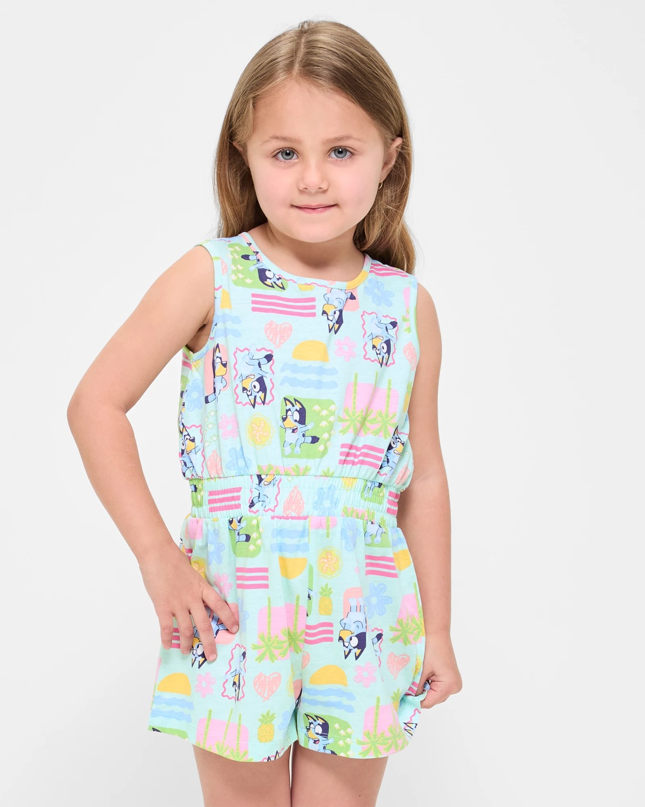 Step into a world of fun with our Bluey Patchwork Playsuit. Made from soft cotton, this playsuit features a delightful green Bluey print that's sure to capture the heart of any fan. The crew neck and sleeveless design keep it comfy and cool, while the shirred elastic waistband ensures a snug fit. Ideal for playdates or adventures, it's easy to slip on with a convenient keyhole button at the back. Make playtime extraordinary and grab yours today!