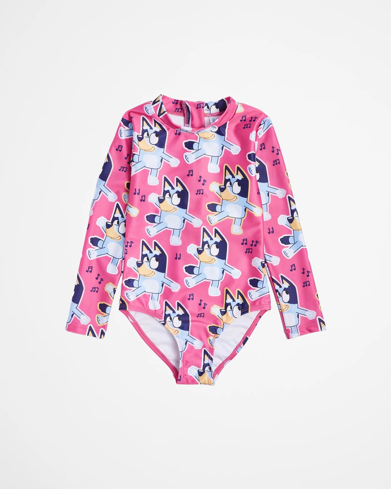 Introducing the stunning Bluey Swimsuit for girls! This swimsuit not only looks fabulous with its pink all-over Bluey print, but it also provides great UPF 50+ sun protection. Designed with a regular fit and featuring a stand collar and long sleeves, it ensures comfort and style. The zip back adds convenience, making it easy to put on and take off. Fully lined for added comfort, this swimsuit is perfect for your little one's water adventures. Dive into fun and make a splash with the Bluey Swimsuit!