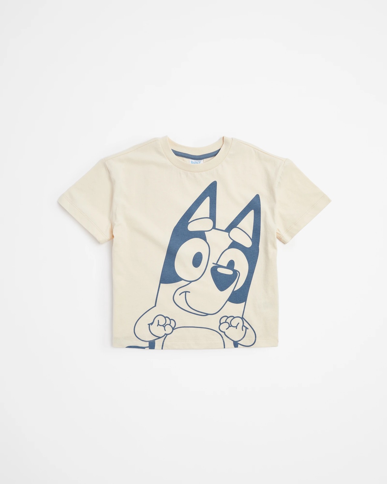 Let your little one dive into comfort and fun with this delightful Boys Bluey T-shirt. Made from cotton, it offers a regular fit that ensures all-day comfort. The cream-coloured fabric pairs wonderfully with the playful Bluey design, while the ribbed crew neck and short sleeves provide a classic fit. Perfect for any casual outing or playtime adventure, this t-shirt is sure to become a favourite in their wardrobe. Grab one now and bring a smile to their face!