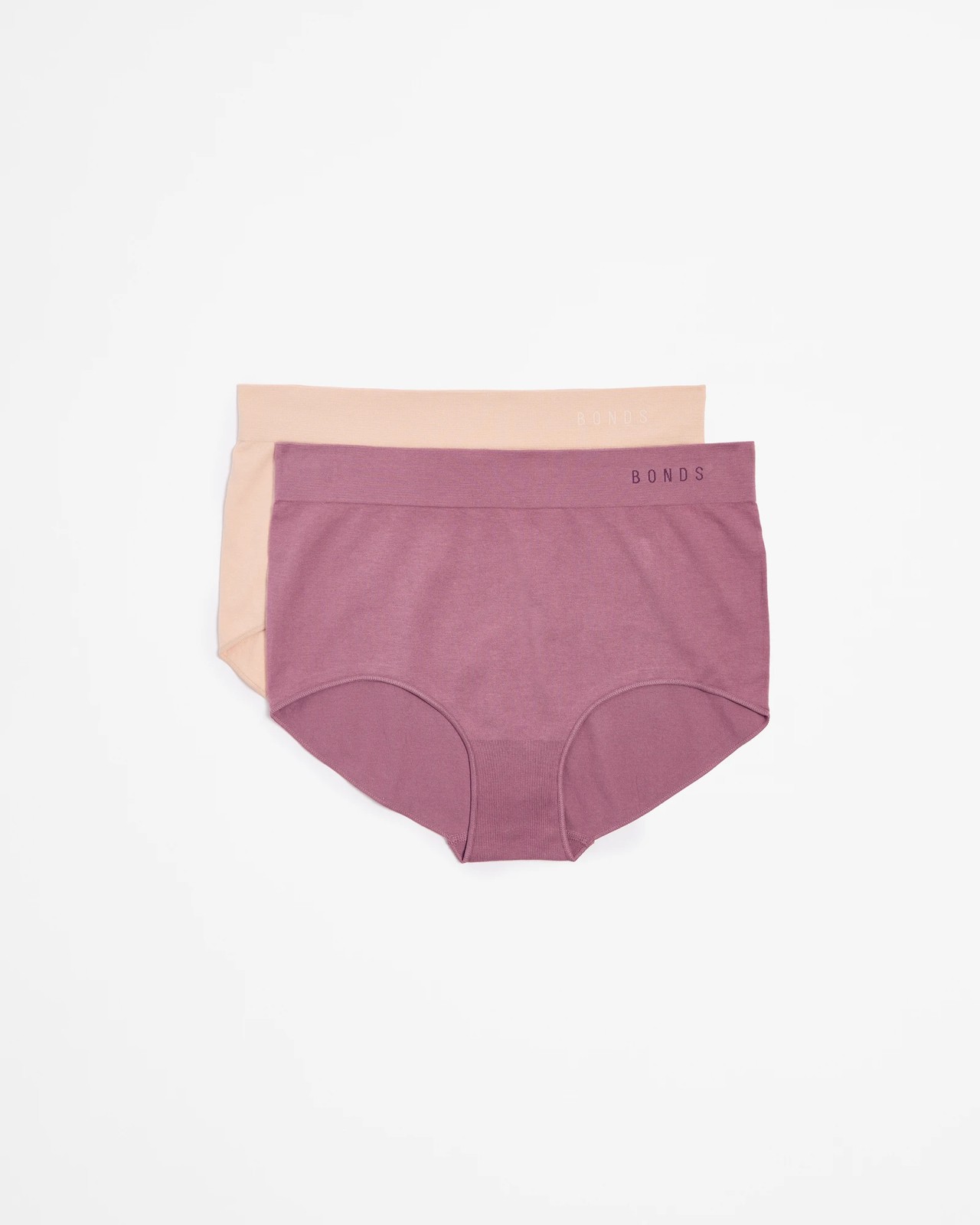 Discover comfort with the Bonds Seamless Full Briefs, available in a convenient two-pack. These full briefs are designed from a cotton and nylon blend, offering a soft and stretchy feel. You'll love the seamless construction that ensures smooth lines under your clothes, making them perfect for everyday wear. The full coverage provided gives confidence with every step, and the stylish Bonds tonal branded waistband adds a touch of fashion-forward flair. Perfect for any wardrobe, these briefs sit comfortably at the waist, featuring a low cut leg and a no-dig finish. Make them your new go-to for comfort and support. Shop now to experience this blend yourself!