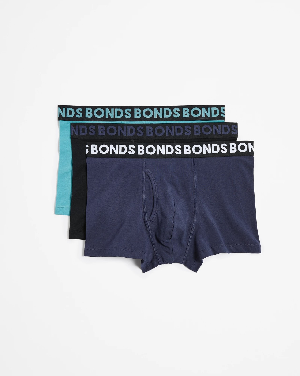 Experience the perfect blend of style and comfort with the Bonds 3 Pack Everyday Trunks. Made from a cotton rich fabrication with added stretch for ultimate ease, these trunks feature a slim fit in a stunning midnight sea colour. With classic trunk styling, a thick flat elastic waistband showcasing the Bonds logo, and a functional fly front, these trunks are perfect for everyday wear. Upgrade your essentials with this incredible value pack of three.