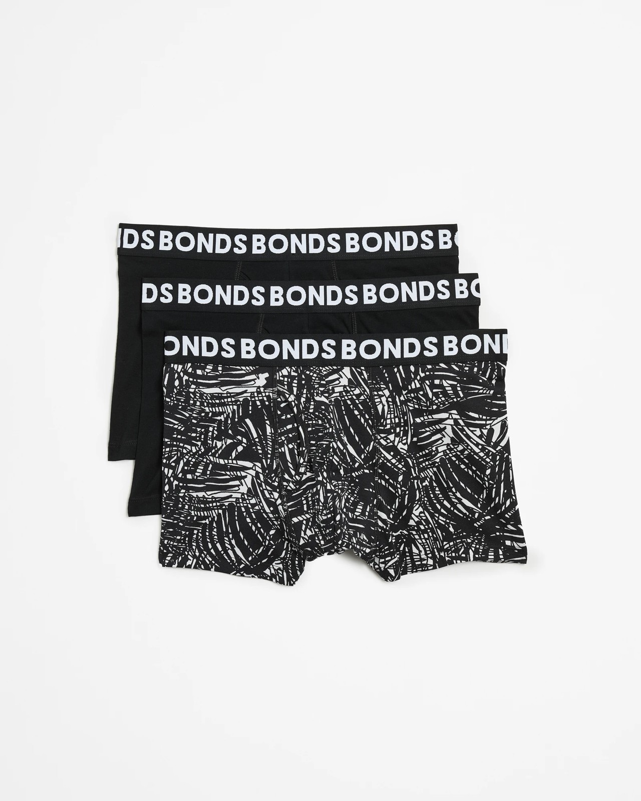 Experience unmatched comfort with Bonds 3 Pack Everyday Trunks. Made from a soft cotton-rich fabric, these trunks offer lightweight ease throughout the day. The stretch elastane ensures they move with you, and the functional fly with front pouch adds extra convenience. Featuring a slim fit and an elastic waistband with BONDS branding, these trunks are designed for everyday wear. Refresh your wardrobe with this practical and stylish three-pack today!