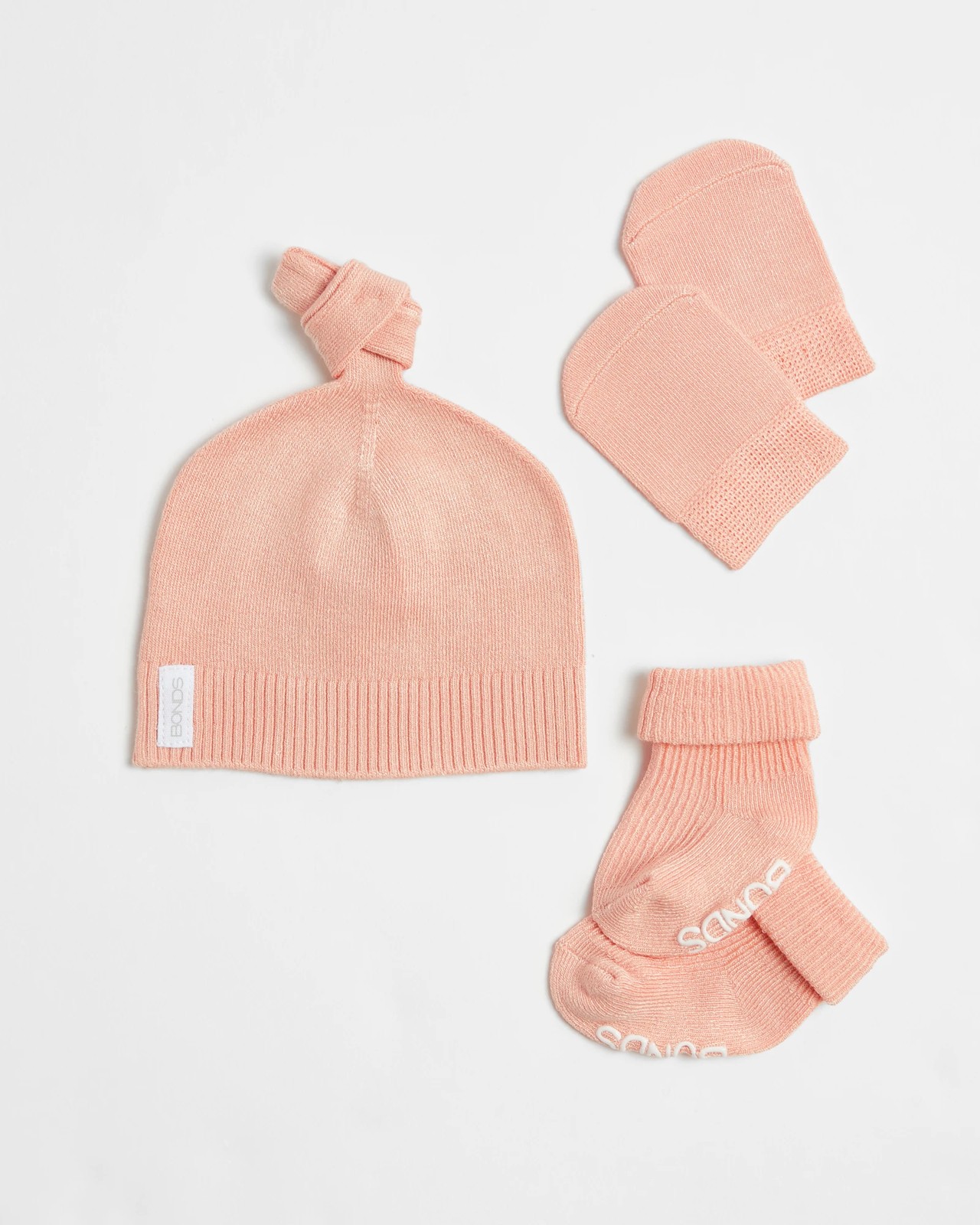Introducing the Bonds Newborn 3 Piece Beanie Set, the perfect addition to your little one's wardrobe. Made from a soft and stretchy blend of viscose nylon, this set is gentle on your baby's delicate skin. The set includes a tie top beanie, turn over socks with Bonds grip on the sole, and mittens, providing warmth and protection for your little bundle. Crafted with comfort and style in mind, this set is the ultimate essential for your newborn. Shop now and give your baby the gift of cosy comfort!